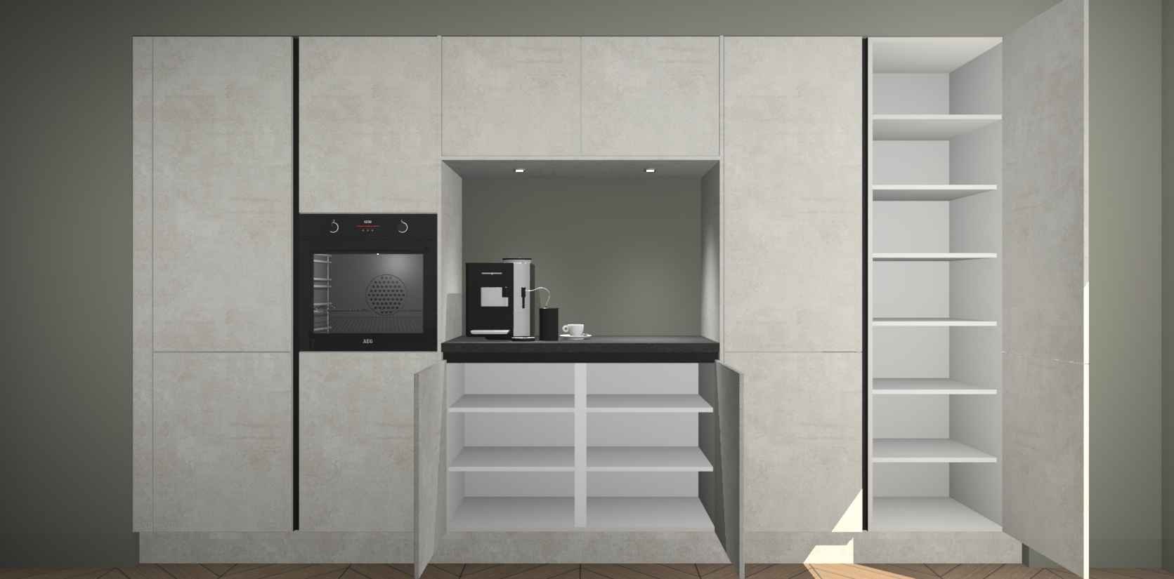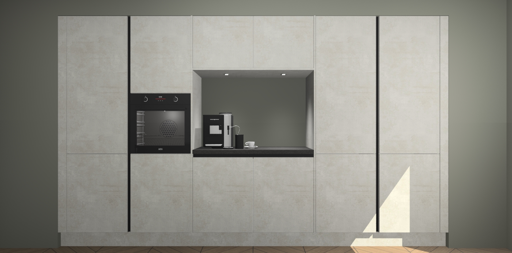 De Beton Opal greeploze keuken Lodz wordt geleverd met een set van 5 ingebouwde apparaten: Een oven, inductiekookplaat, afzuigkap, vaatwasser en koelkast. Deze kunnen gemakkelijk worden opgewaardeerd naar AEG. Met de gegarandeerde lage prijs en de snelle levering van 7 weken kan u er op rekenen dat de Beton Opal greeploze keuken Lodz zo snel mogelijk uw huis bereikt!