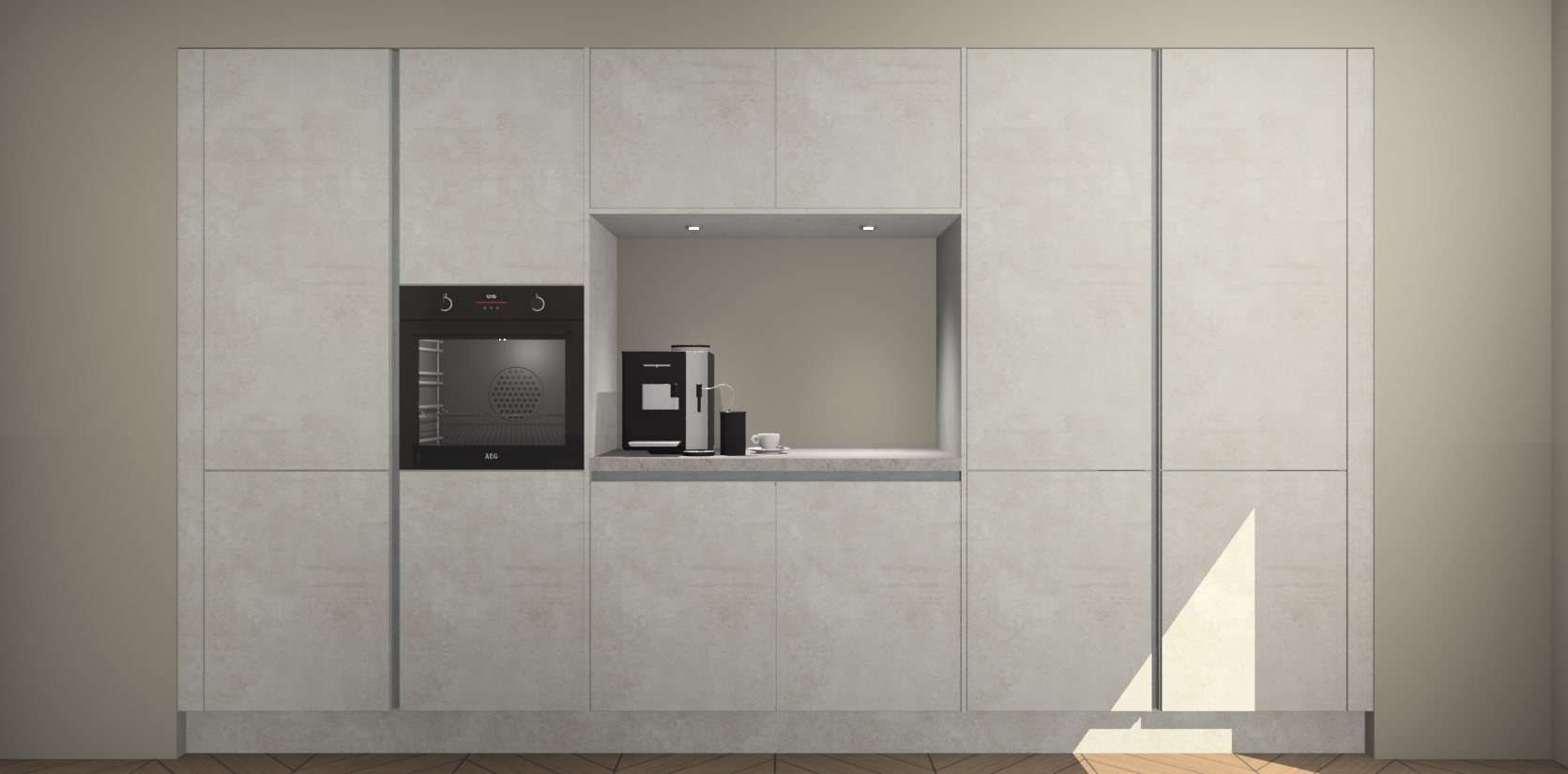 De Beton Opal greeploze keuken Lodz wordt geleverd met een set van 5 ingebouwde apparaten: Een oven, inductiekookplaat, afzuigkap, vaatwasser en koelkast. Deze kunnen gemakkelijk worden opgewaardeerd naar AEG. Met de gegarandeerde lage prijs en de snelle levering van 7 weken kan u er op rekenen dat de Beton Opal greeploze keuken Lodz zo snel mogelijk uw huis bereikt!