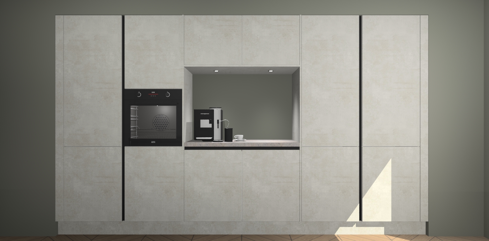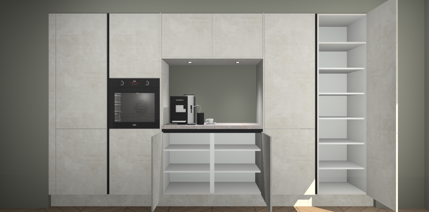 De Beton Opal greeploze keuken Lodz wordt geleverd met een set van 5 ingebouwde apparaten: Een oven, inductiekookplaat, afzuigkap, vaatwasser en koelkast. Deze kunnen gemakkelijk worden opgewaardeerd naar AEG. Met de gegarandeerde lage prijs en de snelle levering van 7 weken kan u er op rekenen dat de Beton Opal greeploze keuken Lodz zo snel mogelijk uw huis bereikt!