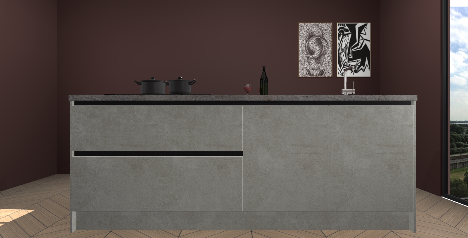 Inclusief plinten, stelpoten en werkblad