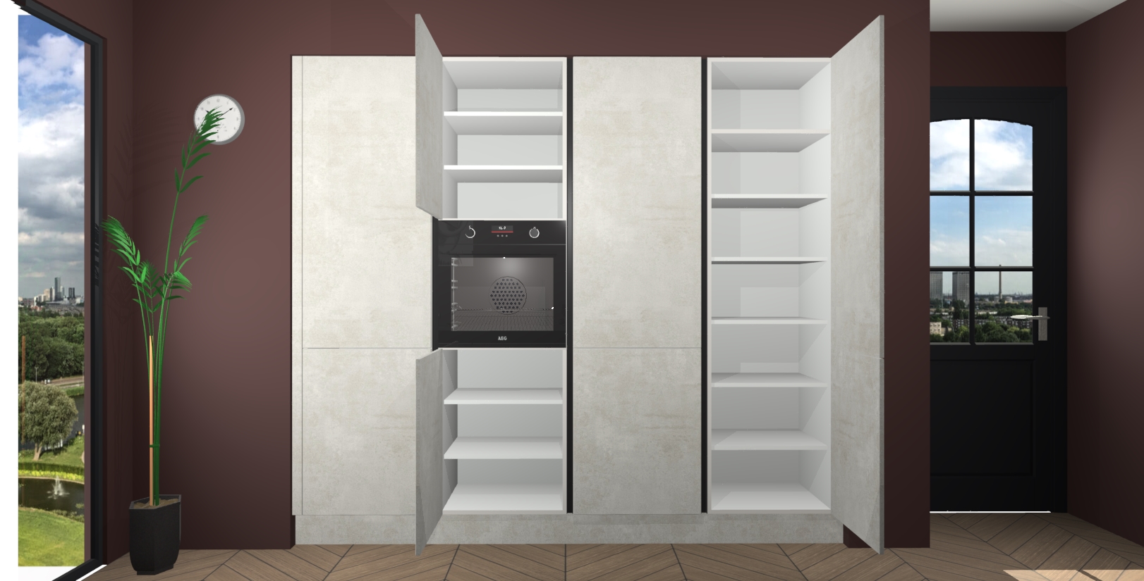 Dankzij de vele opbergruimte wordt praktisch elke centimeter van uw keuken optimaal benut, wat de ruimte een opgeruimde en sfeervolle uitstraling geeft. Bovendien zijn we er trots op dat we een snelle levering van 7 weken en een vaste lage prijs kunnen bieden, zodat u deze prachtige keuken in een mum van tijd in huis hebt!