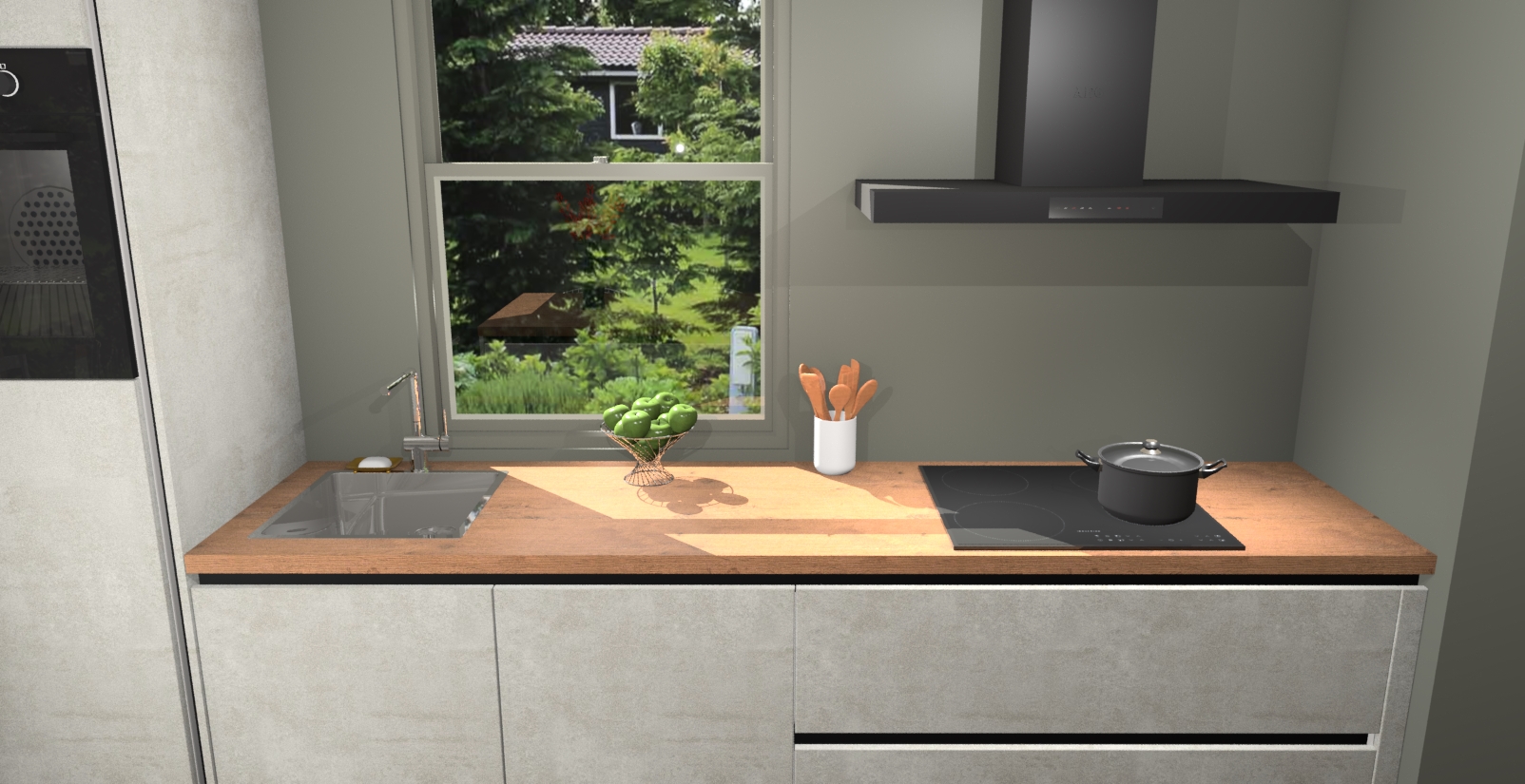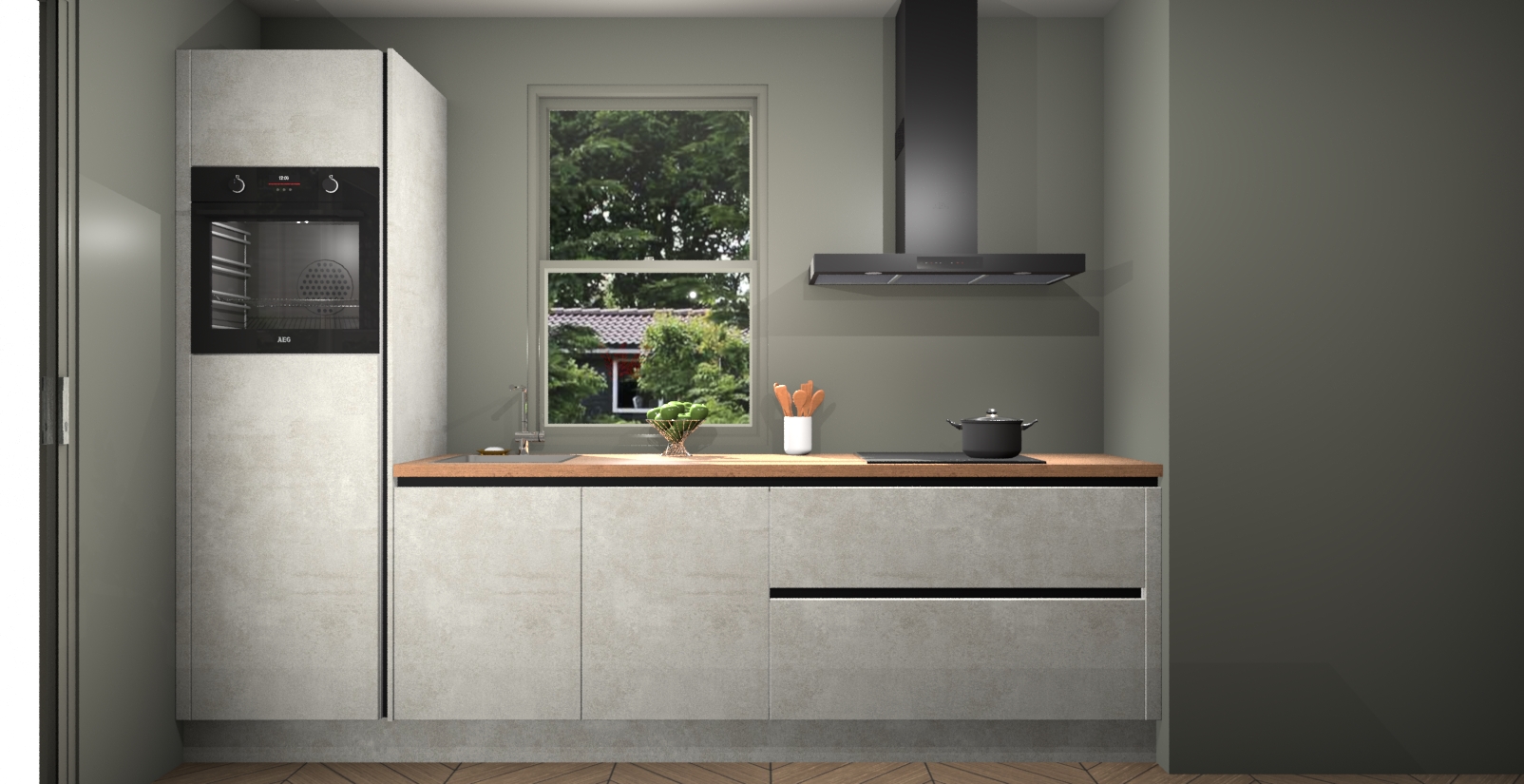 Een stijlvolle en praktische keuken als deze mag gezien worden. Dankzij de prachtige Beton Opal afwerking wordt de keuken gemakkelijk het middelpunt van uw huis - hij ziet er geweldig uit onder allerlei lichtomstandigheden, van dag tot nacht!