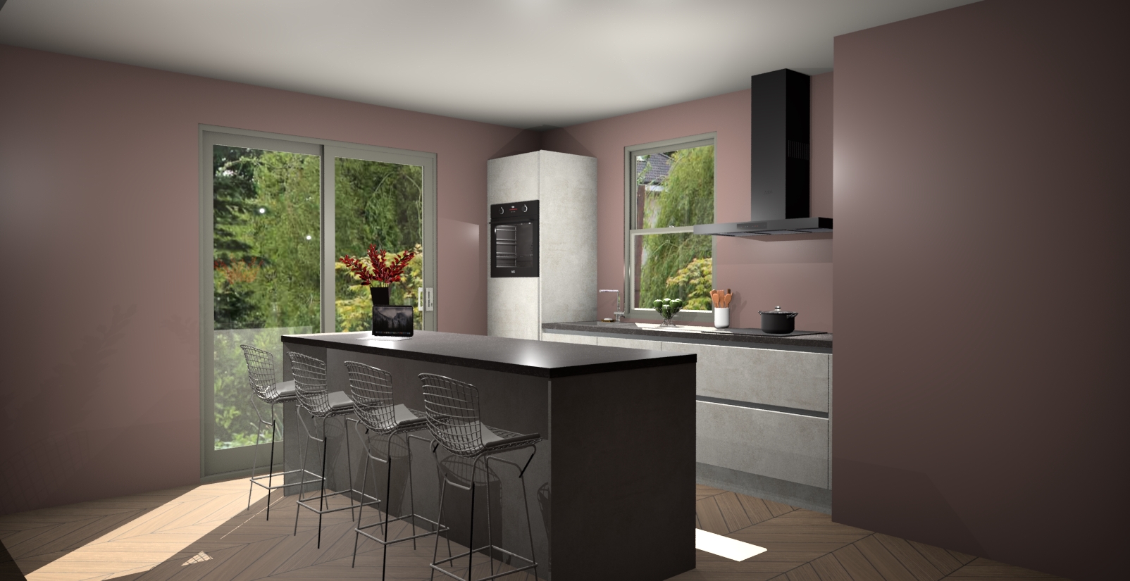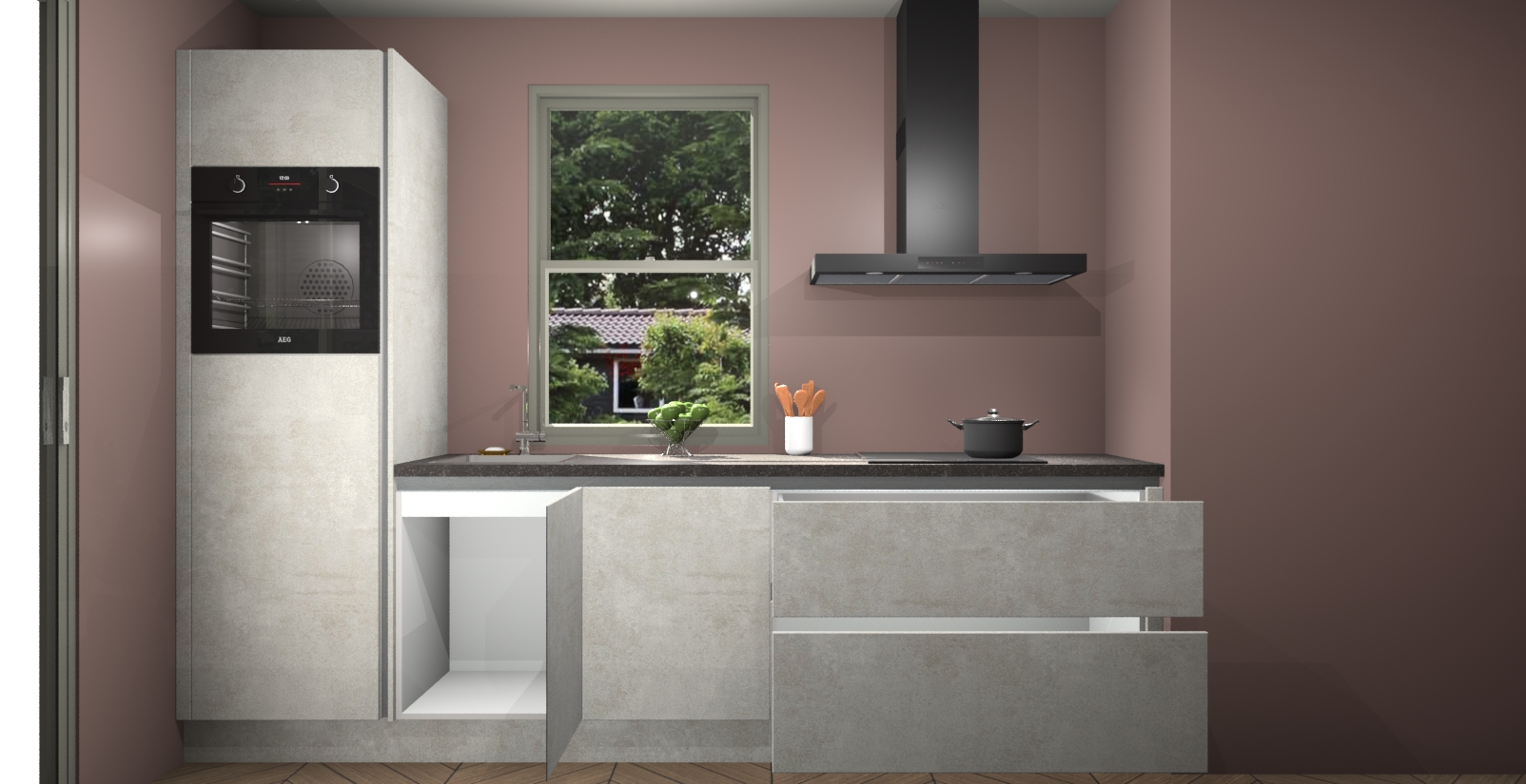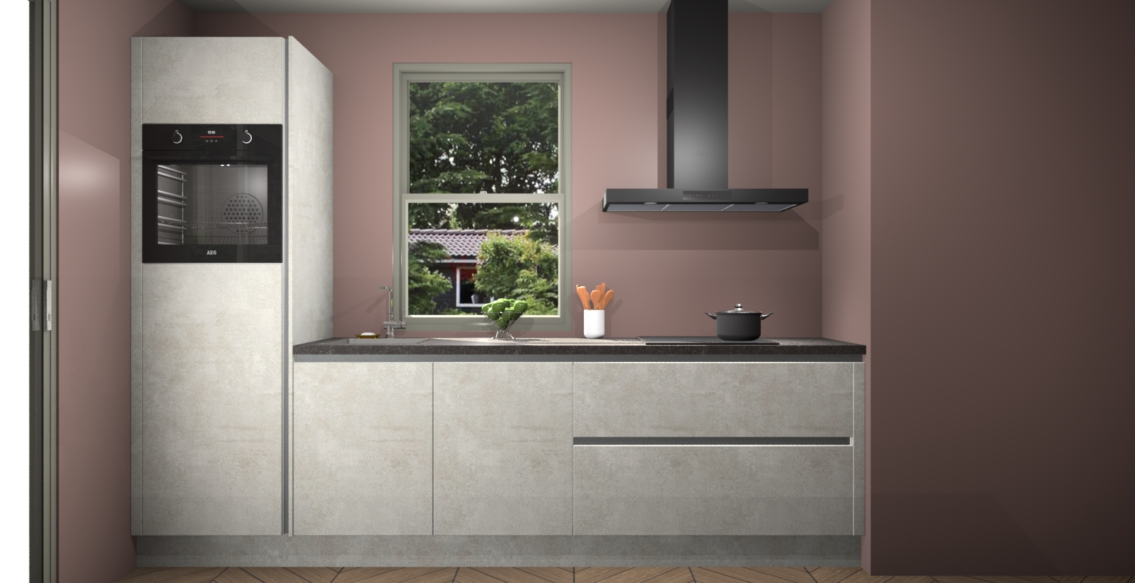 Een stijlvolle en praktische keuken als deze mag gezien worden. Dankzij de prachtige Beton Opal afwerking wordt de keuken gemakkelijk het middelpunt van uw huis - hij ziet er geweldig uit onder allerlei lichtomstandigheden, van dag tot nacht!