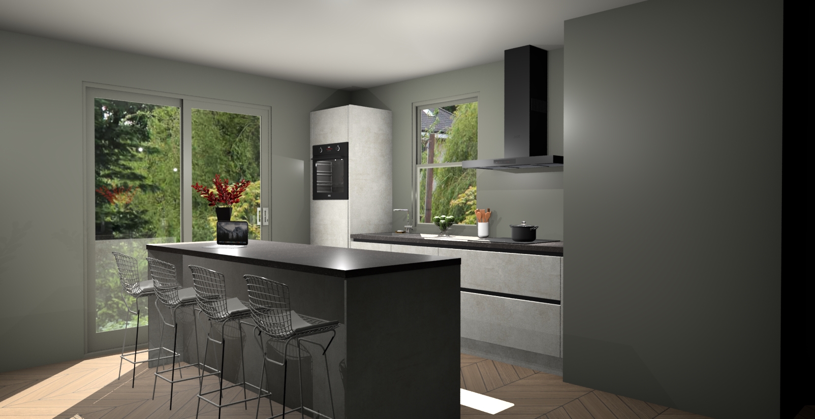 Een stijlvolle en praktische keuken als deze mag gezien worden. Dankzij de prachtige Beton Opal afwerking wordt de keuken gemakkelijk het middelpunt van uw huis - hij ziet er geweldig uit onder allerlei lichtomstandigheden, van dag tot nacht!