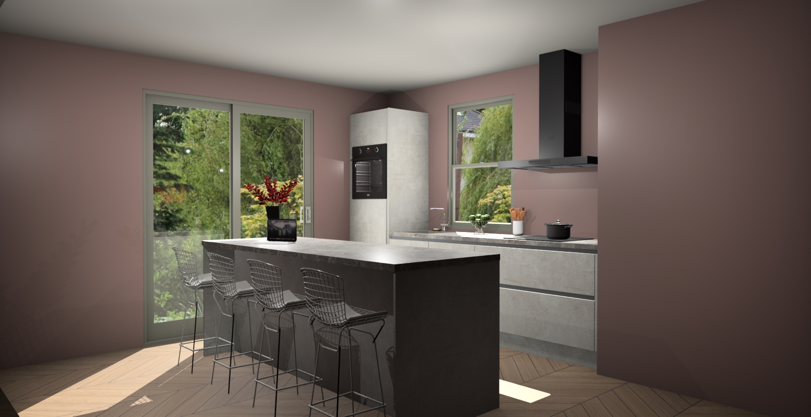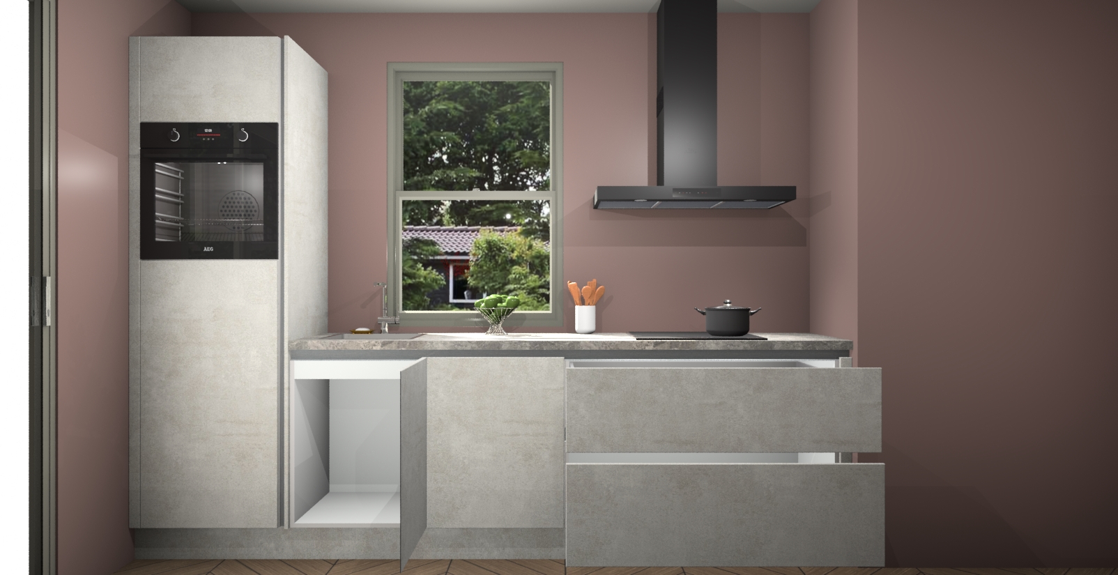 Een stijlvolle en praktische keuken als deze mag gezien worden. Dankzij de prachtige Beton Opal afwerking wordt de keuken gemakkelijk het middelpunt van uw huis - hij ziet er geweldig uit onder allerlei lichtomstandigheden, van dag tot nacht!