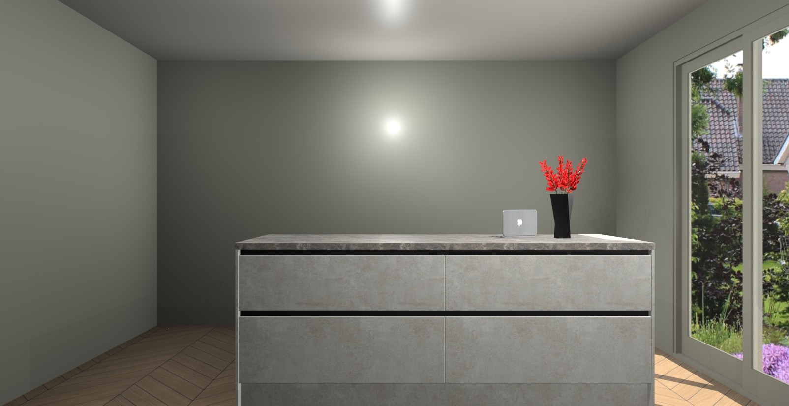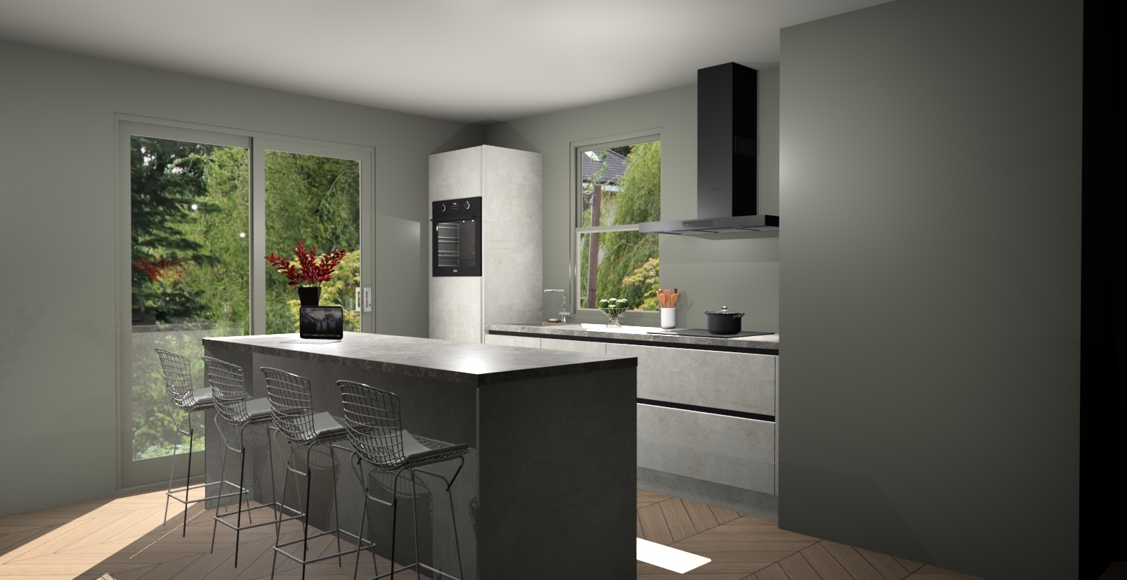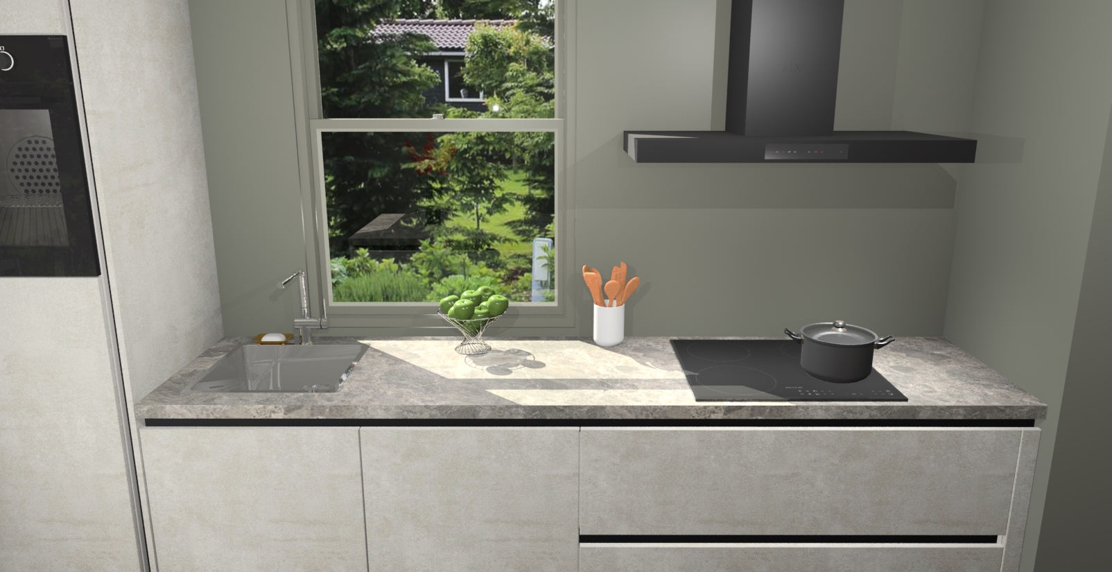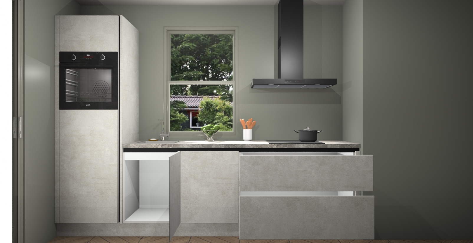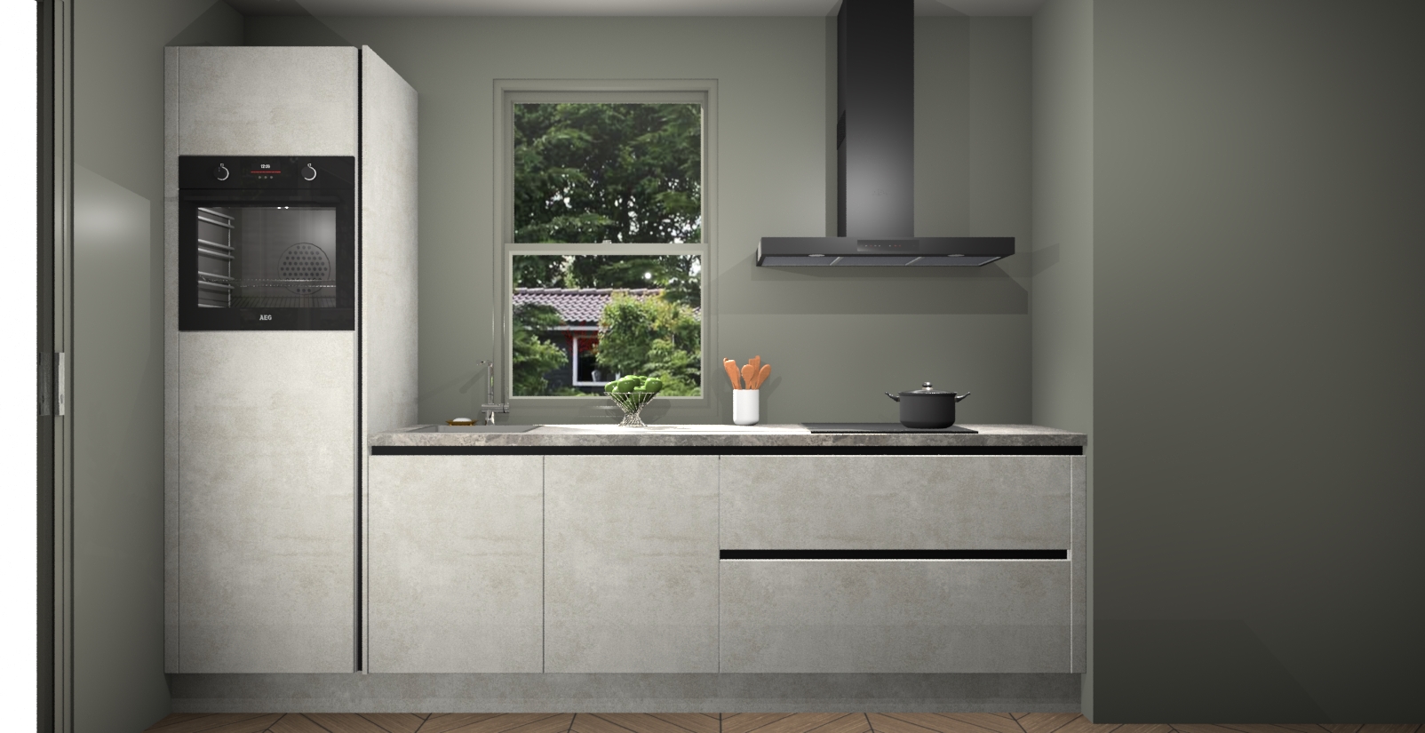 Een stijlvolle en praktische keuken als deze mag gezien worden. Dankzij de prachtige Beton Opal afwerking wordt de keuken gemakkelijk het middelpunt van uw huis - hij ziet er geweldig uit onder allerlei lichtomstandigheden, van dag tot nacht!