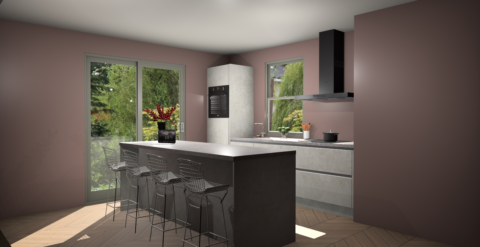 Een stijlvolle en praktische keuken als deze mag gezien worden. Dankzij de prachtige Beton Opal afwerking wordt de keuken gemakkelijk het middelpunt van uw huis - hij ziet er geweldig uit onder allerlei lichtomstandigheden, van dag tot nacht!