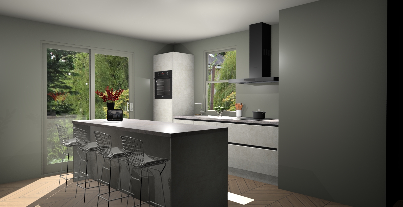 Een stijlvolle en praktische keuken als deze mag gezien worden. Dankzij de prachtige Beton Opal afwerking wordt de keuken gemakkelijk het middelpunt van uw huis - hij ziet er geweldig uit onder allerlei lichtomstandigheden, van dag tot nacht!