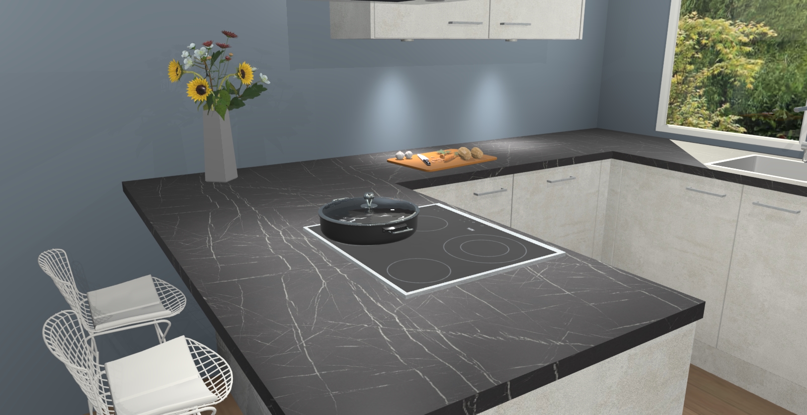• Bij een hoekwerkblad zijn de hoeken in gevreesd en op maat gemaakt