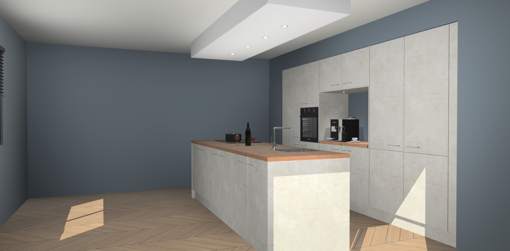 Sfeervol luxe met de Beton Opal keuken Lodz! Reken op een moderne look die met zijn schitterende Beton Opal kleur en het prachtige keukeneiland echt zal schitteren in uw keuken. Met veel verschillende berging opties zult u alles kunnen opbergen wat u nodig heeft in deze hoopvolle ruimte, waaronder ook soft-close vergrendeling.