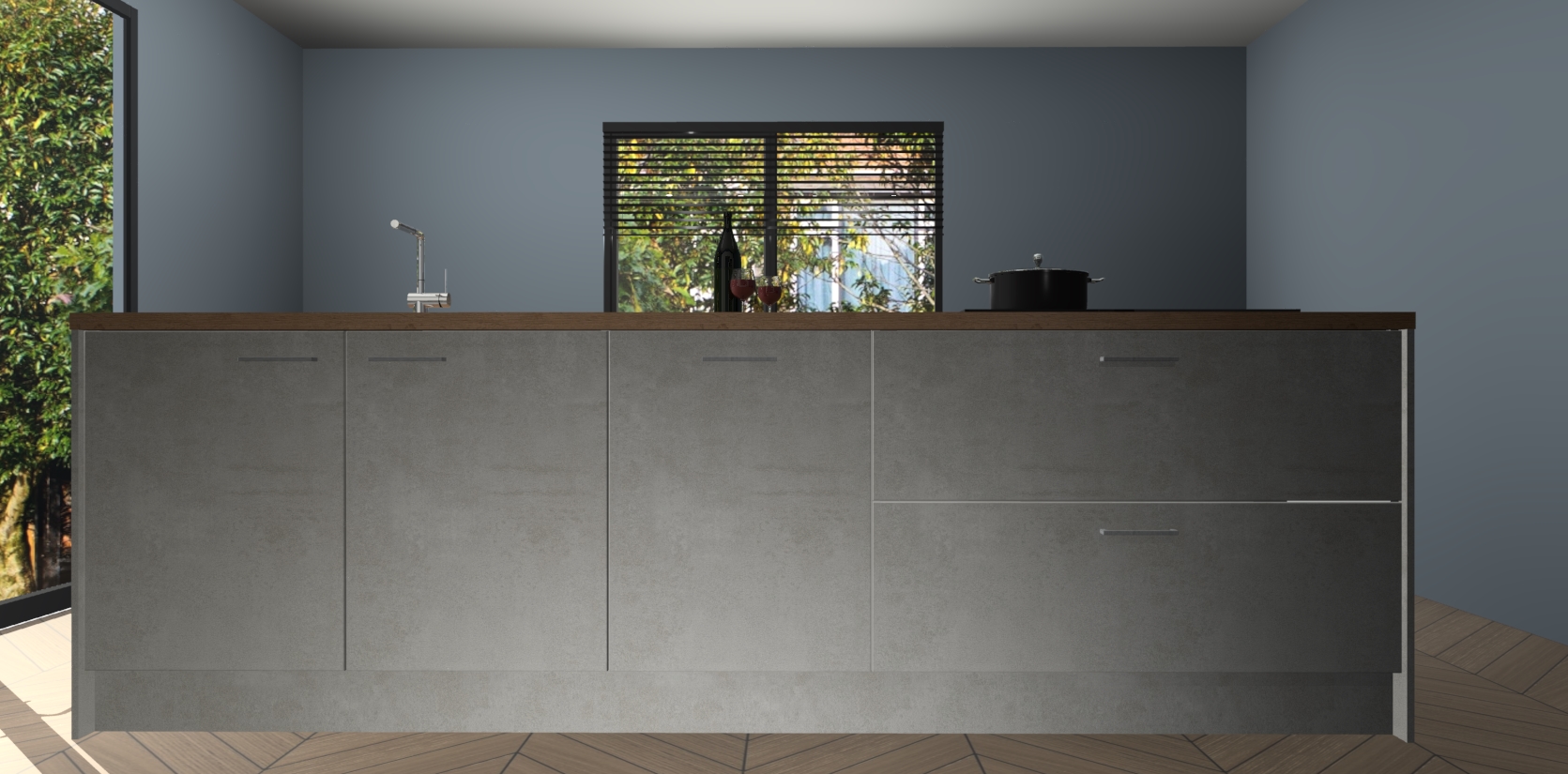 Inclusief plinten, stelpoten en werkblad