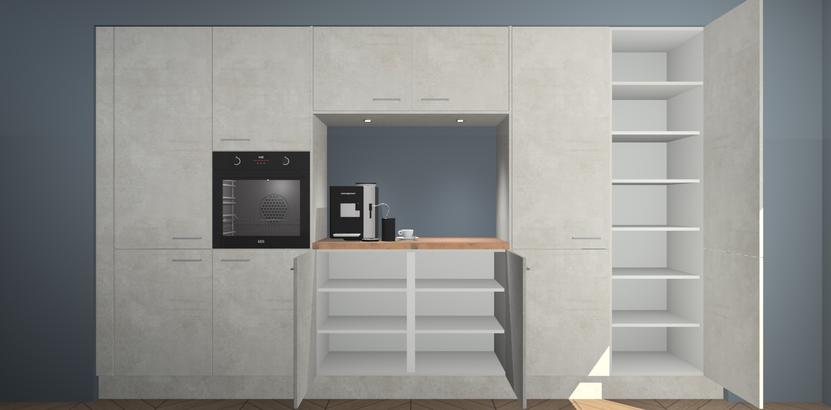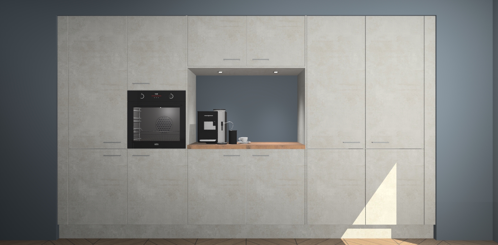 De Beton Opal keuken Lodz wordt geleverd met een set van 5 ingebouwde apparaten: Een oven, inductiekookplaat, afzuigkap, vaatwasser en koelkast. Deze kunnen gemakkelijk worden opgewaardeerd naar AEG. Met de gegarandeerde lage prijs en de snelle levering van 7 weken kan u er op rekenen dat de Beton Opal keuken Lodz zo snel mogelijk uw huis bereikt!