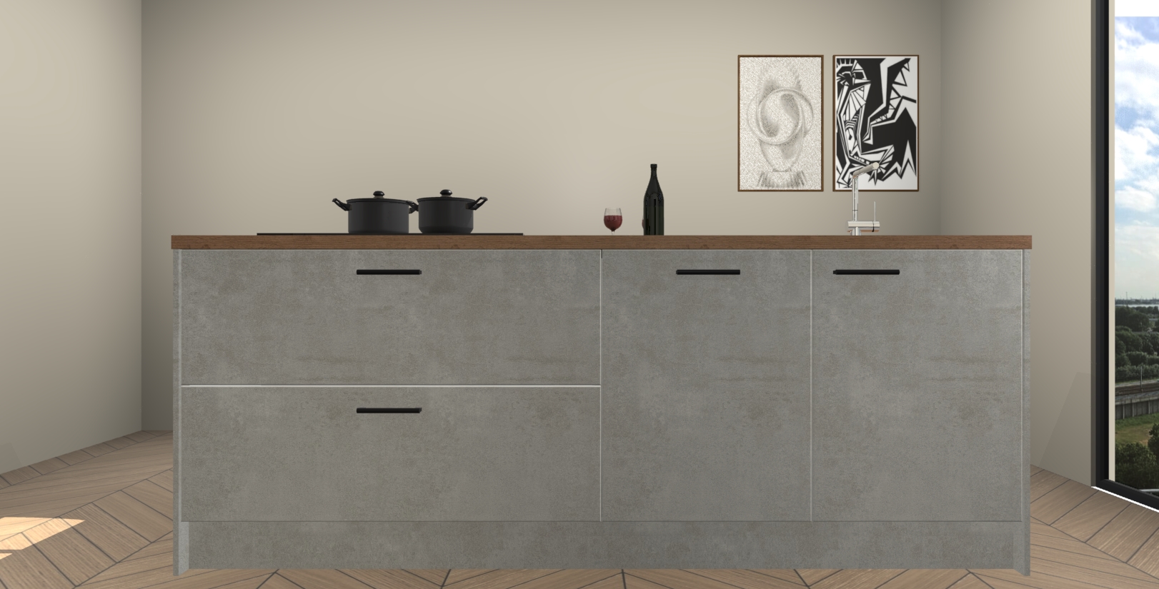 Inclusief plinten, stelpoten en werkblad