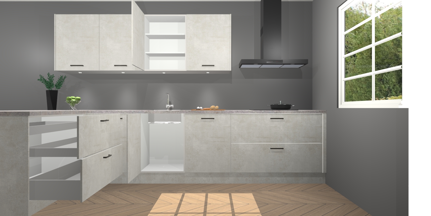 Inclusief plinten, stelpoten en werkblad