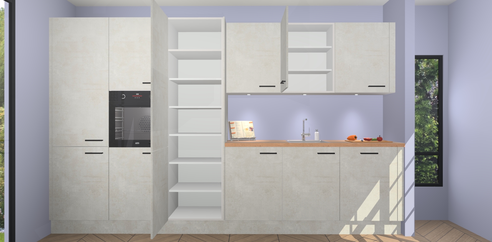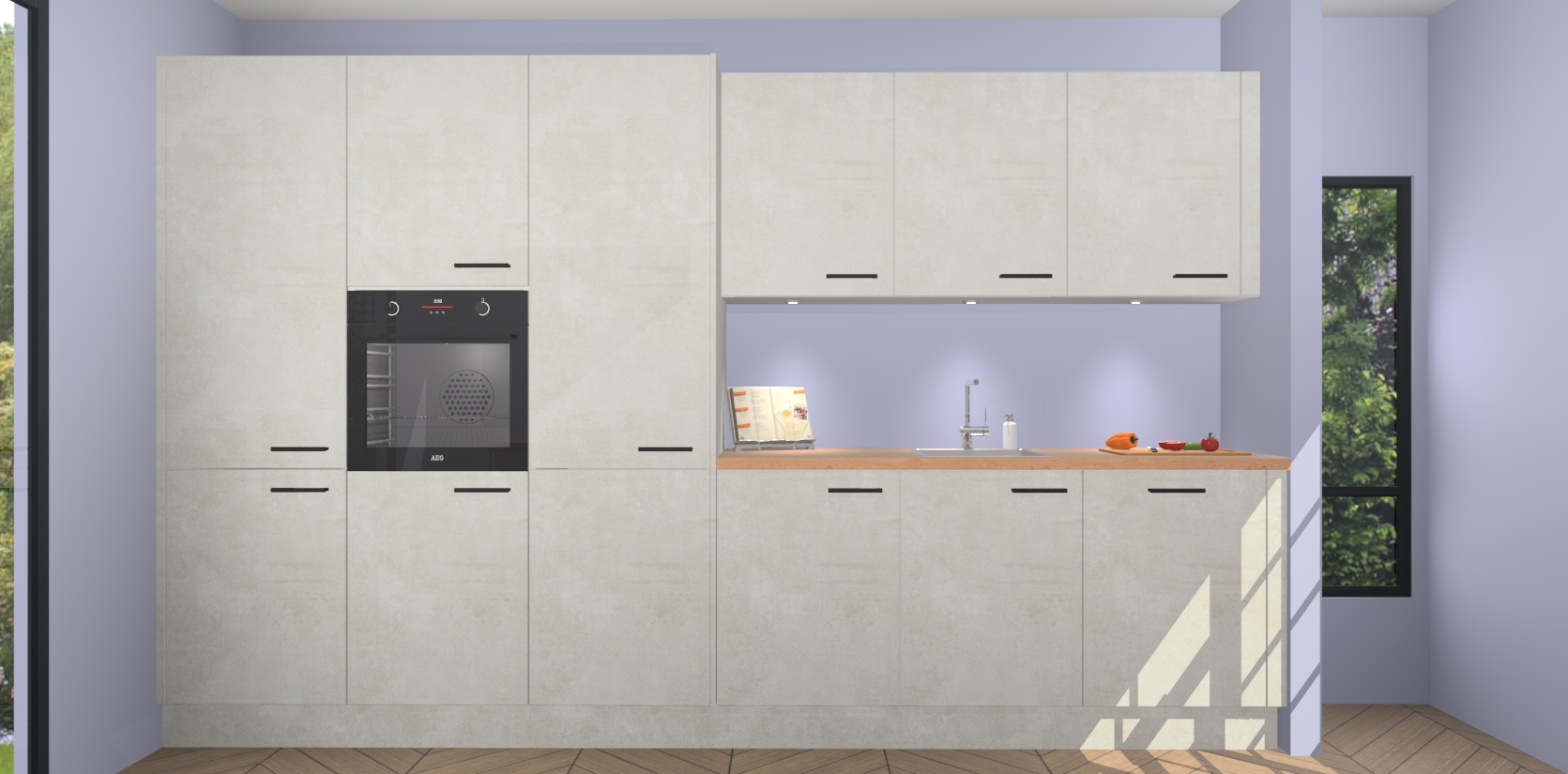Maak kennis met de nieuwe Beton Opal keuken Straatsburg, dat gemaakt is voor de moderne huiseigenaar. Deze chique en eigentijdse keuken geeft uw huis een instant upgrade. Het Beton Opal ontwerp creëert de perfecte balans tussen elegantie en functionaliteit en geeft uw ruimte een strakke, uitnodigende sfeer. Het spoeleiland geeft ruime opbergruimte en met de soft-close deuren is deze keuken perfect voor elk huis.