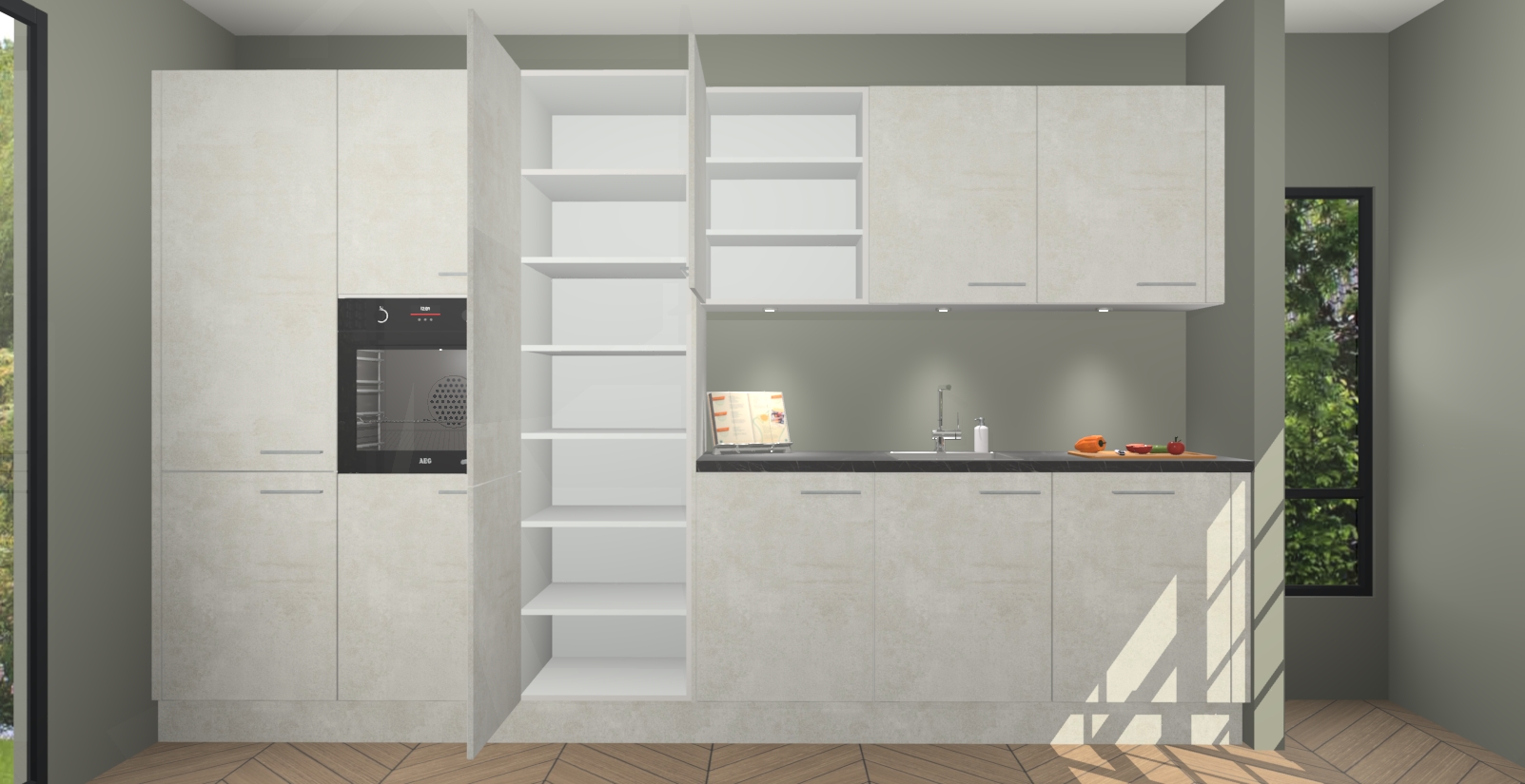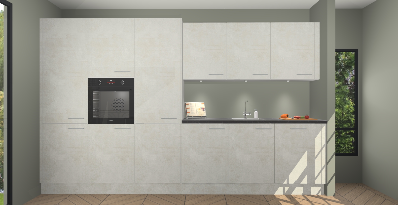 Maak kennis met de nieuwe Beton Opal keuken Straatsburg, dat gemaakt is voor de moderne huiseigenaar. Deze chique en eigentijdse keuken geeft uw huis een instant upgrade. Het Beton Opal ontwerp creëert de perfecte balans tussen elegantie en functionaliteit en geeft uw ruimte een strakke, uitnodigende sfeer. Het spoeleiland geeft ruime opbergruimte en met de soft-close deuren is deze keuken perfect voor elk huis.