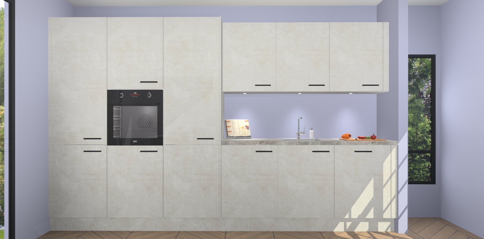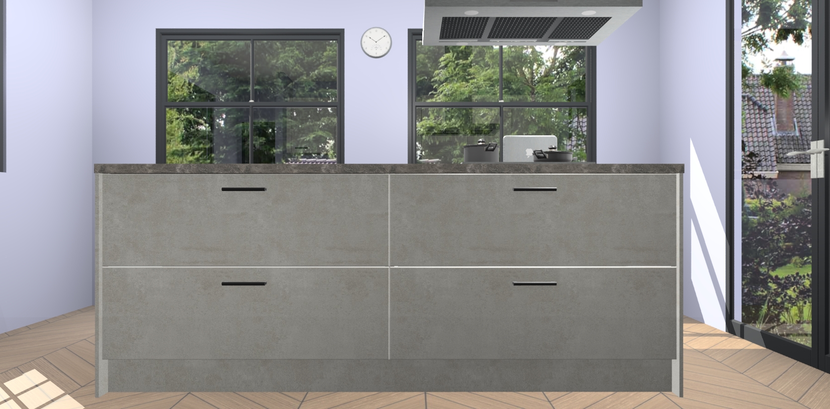 Maak kennis met de nieuwe Beton Opal keuken Straatsburg, dat gemaakt is voor de moderne huiseigenaar. Deze chique en eigentijdse keuken geeft uw huis een instant upgrade. Het Beton Opal ontwerp creëert de perfecte balans tussen elegantie en functionaliteit en geeft uw ruimte een strakke, uitnodigende sfeer. Het spoeleiland geeft ruime opbergruimte en met de soft-close deuren is deze keuken perfect voor elk huis.