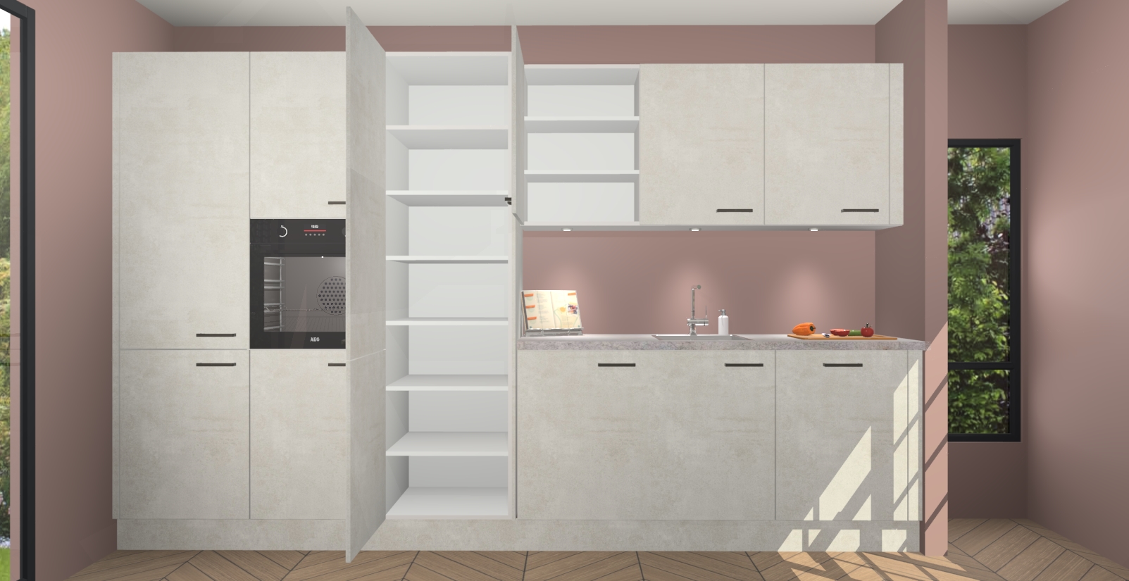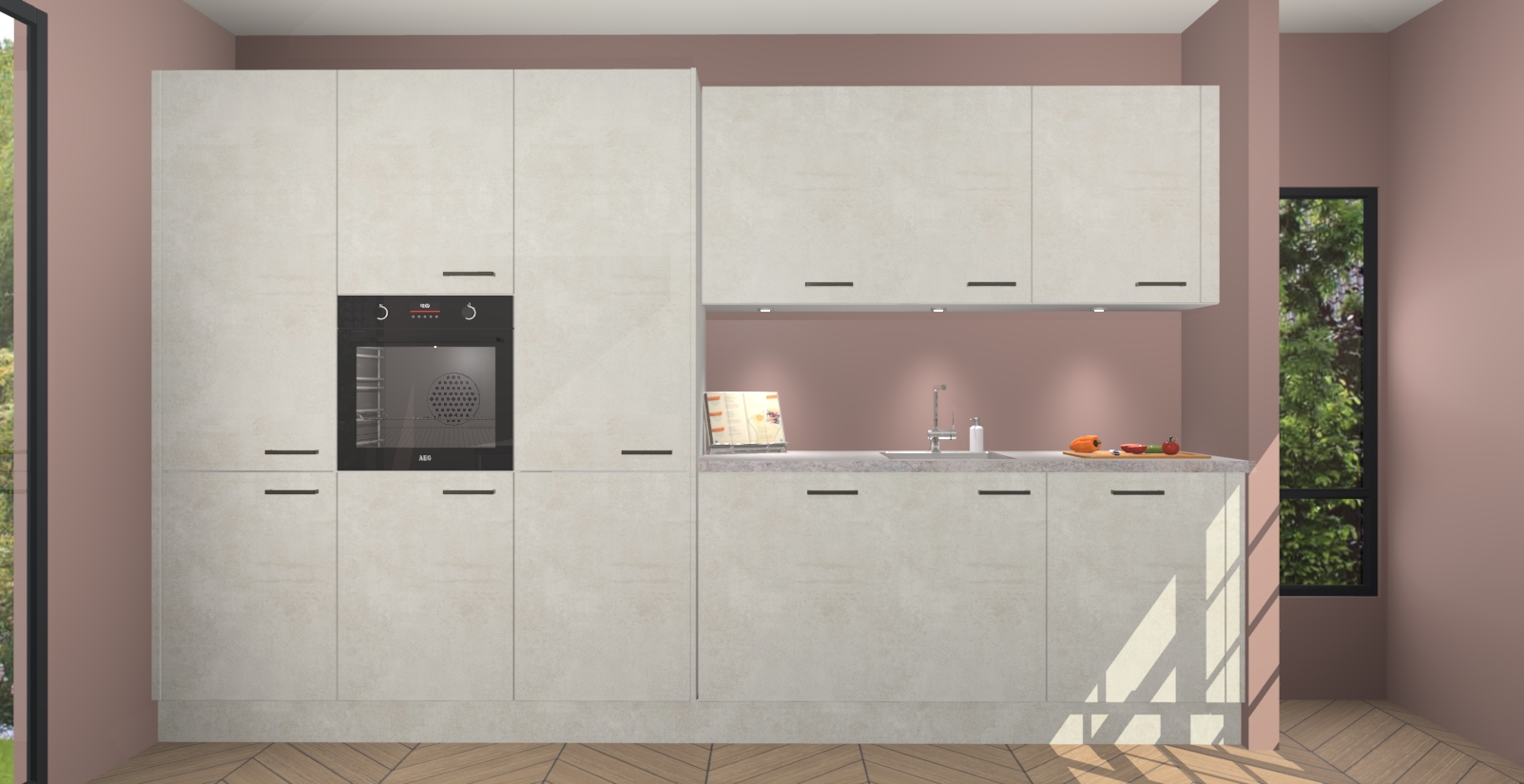 Maak kennis met de nieuwe Beton Opal keuken Straatsburg, dat gemaakt is voor de moderne huiseigenaar. Deze chique en eigentijdse keuken geeft uw huis een instant upgrade. Het Beton Opal ontwerp creëert de perfecte balans tussen elegantie en functionaliteit en geeft uw ruimte een strakke, uitnodigende sfeer. Het spoeleiland geeft ruime opbergruimte en met de soft-close deuren is deze keuken  perfect voor elk huis.