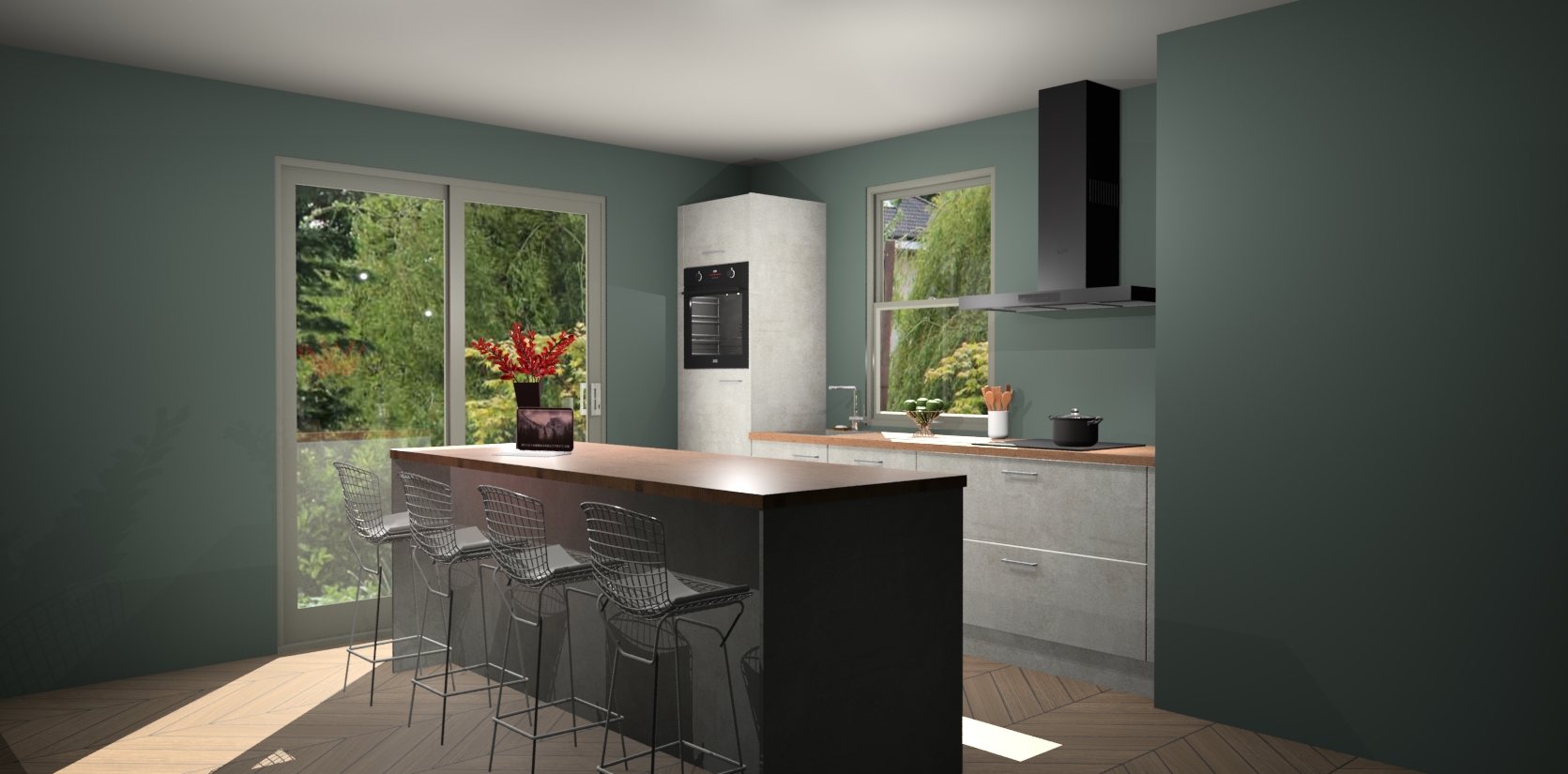 Een stijlvolle en praktische keuken als deze mag gezien worden. Dankzij de prachtige Beton Opal afwerking wordt de keuken gemakkelijk het middelpunt van uw huis - hij ziet er geweldig uit onder allerlei lichtomstandigheden, van dag tot nacht!