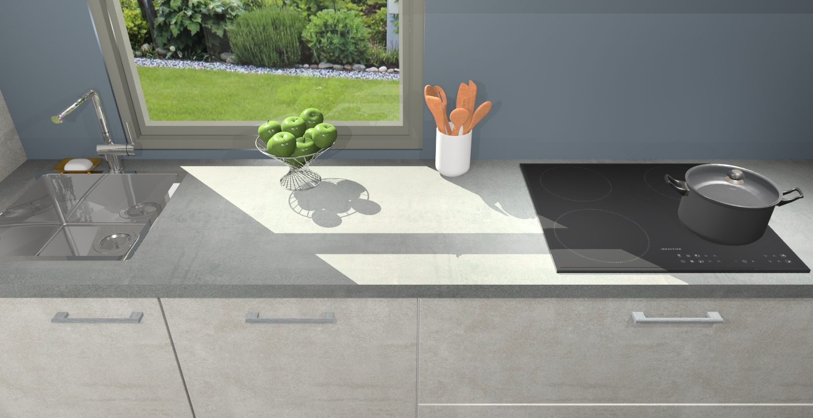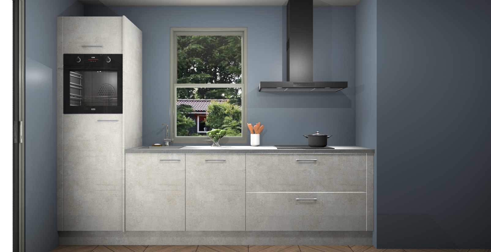 Een stijlvolle en praktische keuken als deze mag gezien worden. Dankzij de prachtige Beton Opal afwerking wordt de keuken gemakkelijk het middelpunt van uw huis - hij ziet er geweldig uit onder allerlei lichtomstandigheden, van dag tot nacht!
