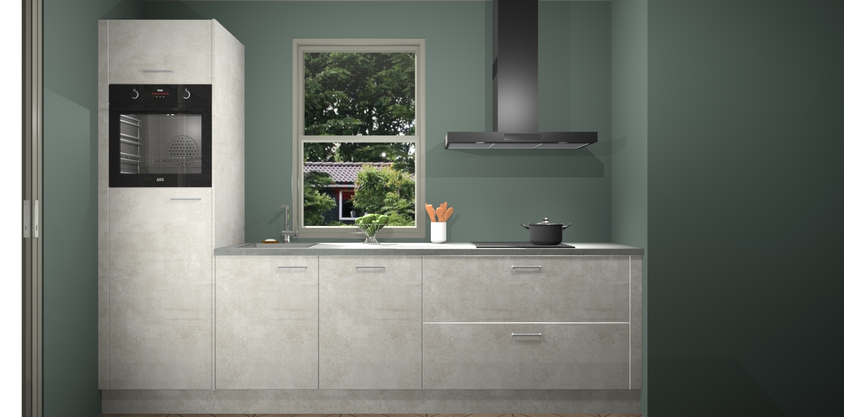 Een stijlvolle en praktische keuken als deze mag gezien worden. Dankzij de prachtige Beton Opal afwerking wordt de keuken gemakkelijk het middelpunt van uw huis - hij ziet er geweldig uit onder allerlei lichtomstandigheden, van dag tot nacht!