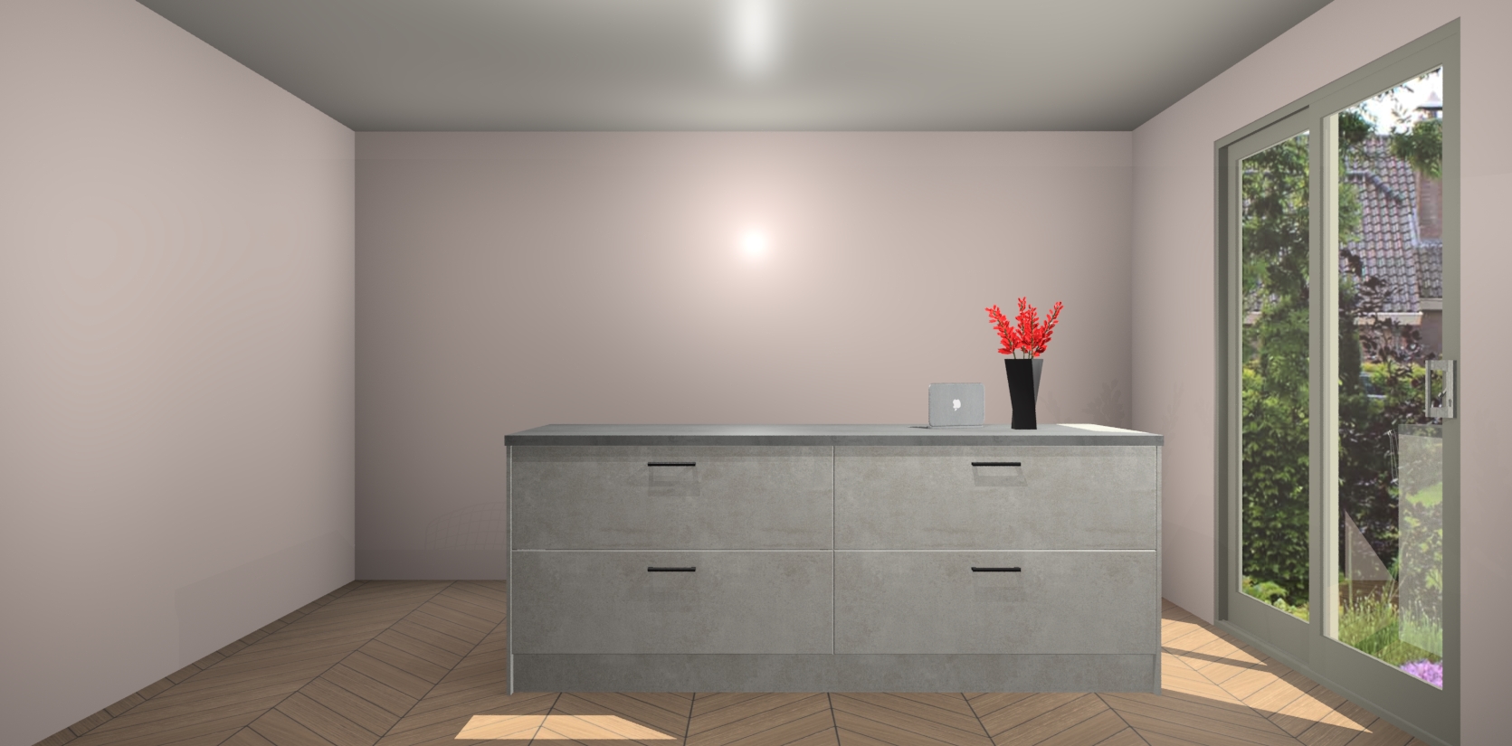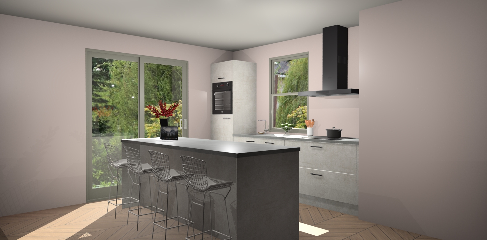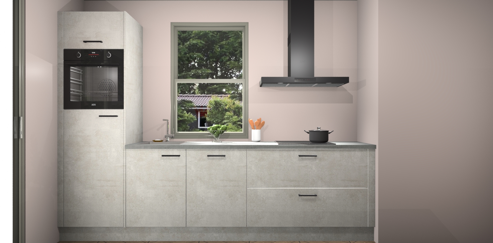 Een stijlvolle en praktische keuken als deze mag gezien worden. Dankzij de prachtige Beton Opal afwerking wordt de keuken gemakkelijk het middelpunt van uw huis - hij ziet er geweldig uit onder allerlei lichtomstandigheden, van dag tot nacht!