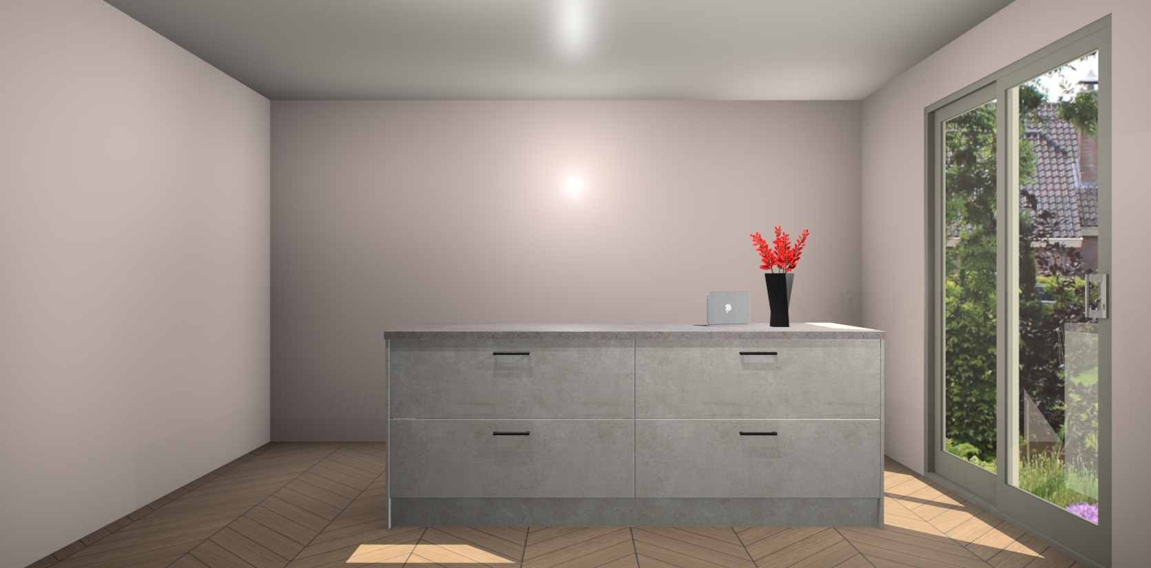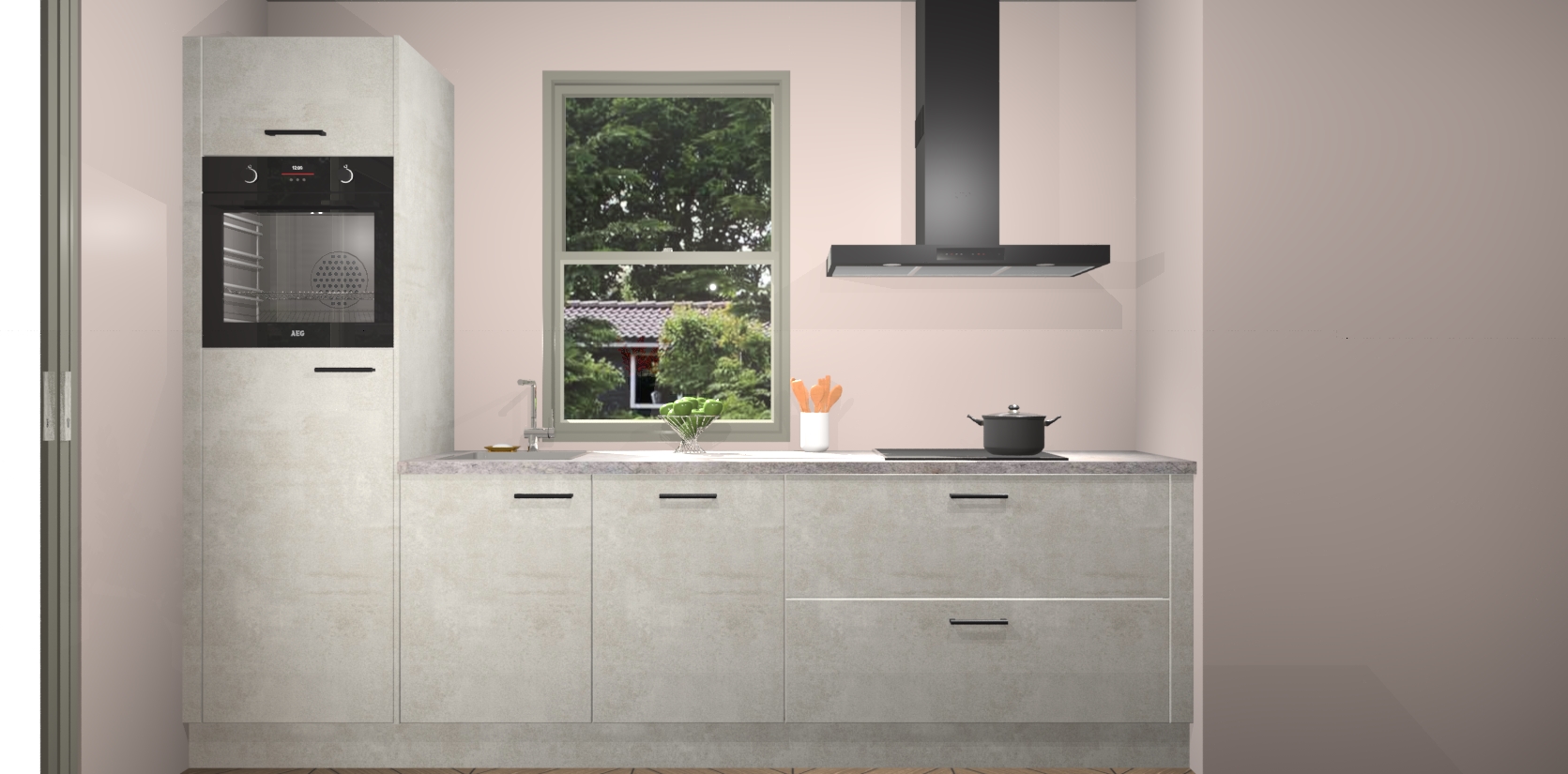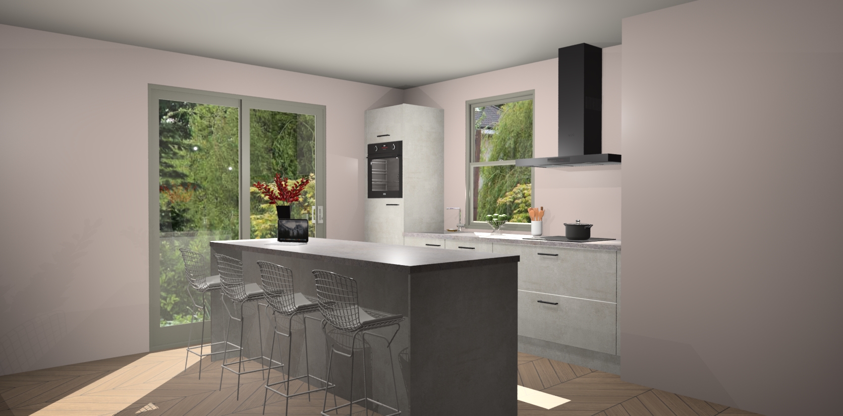 Een stijlvolle en praktische keuken als deze mag gezien worden. Dankzij de prachtige Beton Opal afwerking wordt de keuken gemakkelijk het middelpunt van uw huis - hij ziet er geweldig uit onder allerlei lichtomstandigheden, van dag tot nacht!