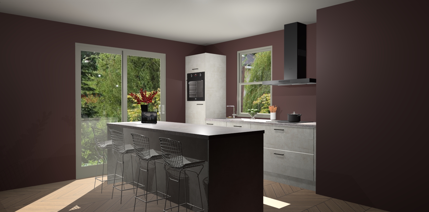 Een stijlvolle en praktische keuken als deze mag gezien worden. Dankzij de prachtige Beton Opal afwerking wordt de keuken gemakkelijk het middelpunt van uw huis - hij ziet er geweldig uit onder allerlei lichtomstandigheden, van dag tot nacht!