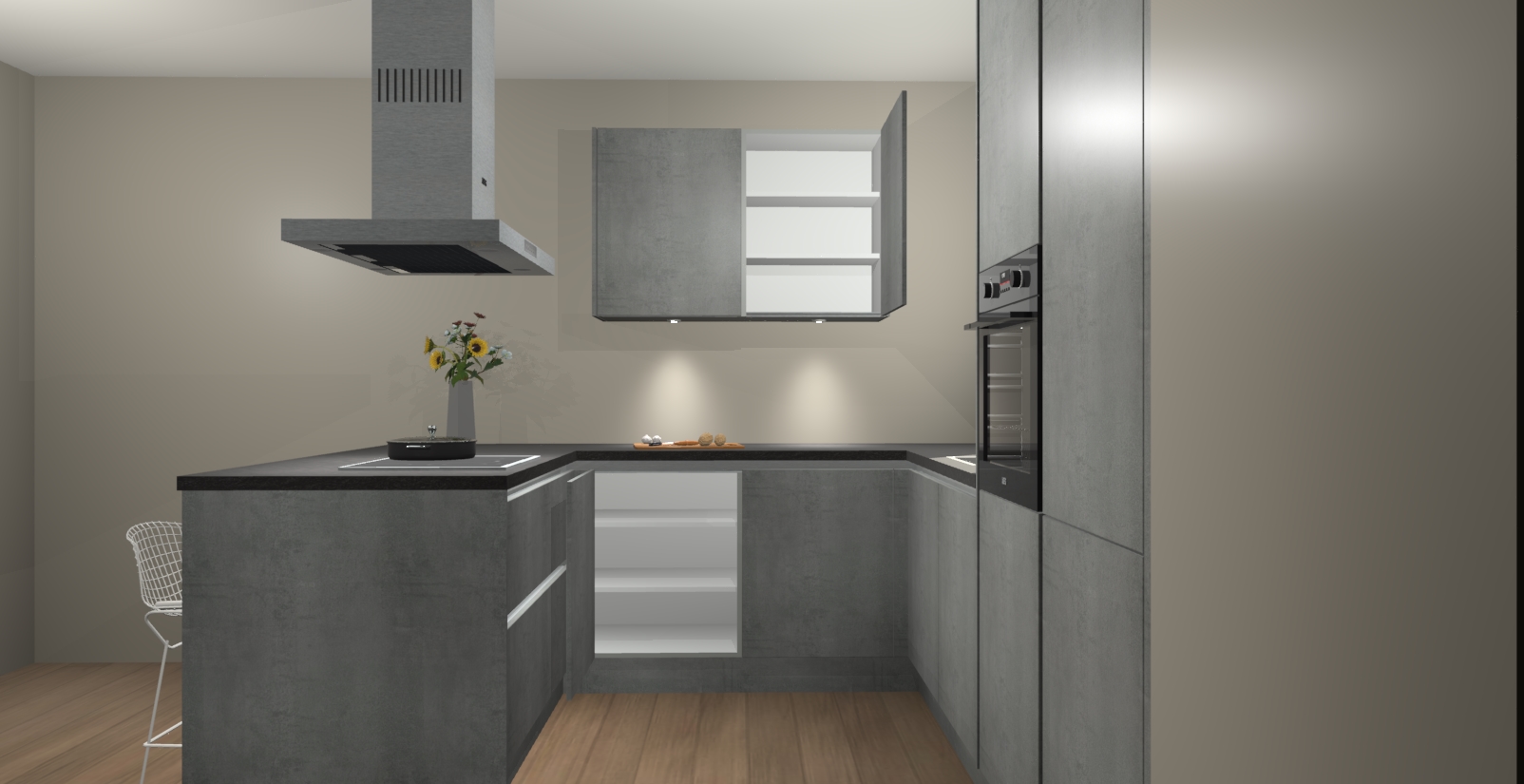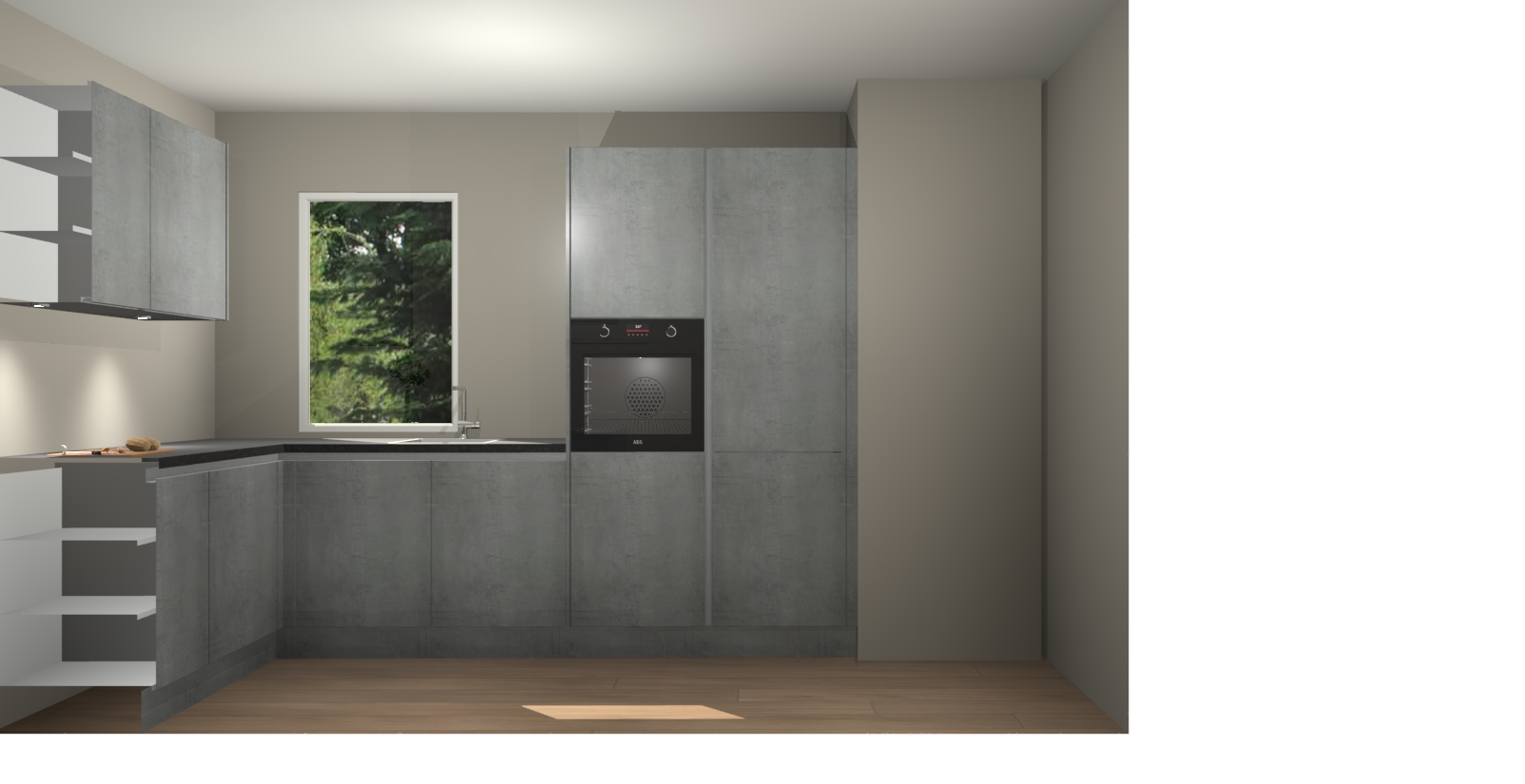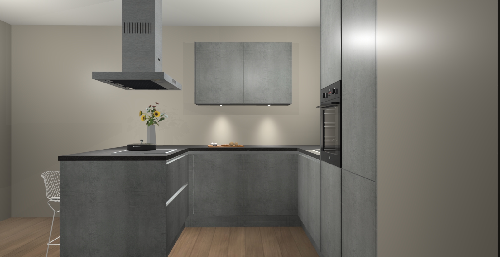 De perfecte toevoeging aan uw droomkeuken! De Beton Parelgrijs greeploze keuken Kalisz is een opmerkelijke en verfijnde keuken. Hij is ontworpen met moderne lijnen en tijdloze schoonheid die garant staan voor een luxe uitstraling. Deze uiterst functionele en mooie keuken heeft een reeks verbazingwekkende functies: de overvloedige opbergruimte bevat soft close deuren, terwijl vijf inbouwapparaten zijn inbegrepen in de vaste lage prijs. Beter nog, uw Beton Parelgrijs greeploze  keuken Kalisz bestellen duurt slechts 7 weken met levering van voorgemonteerde kasten.