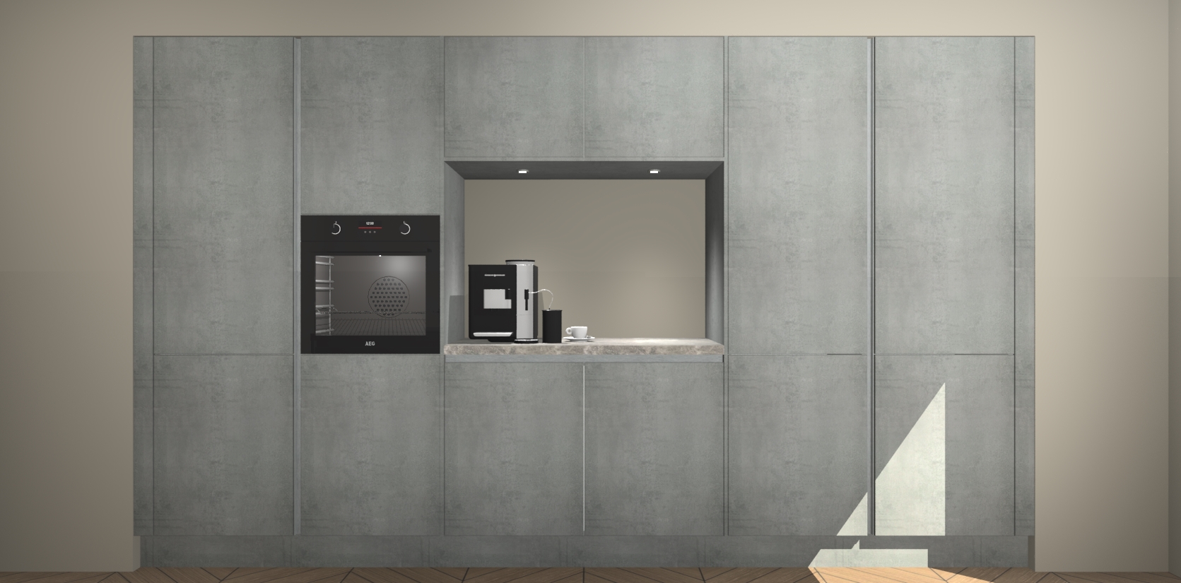 De Beton Parelgrijs greeploze keuken Lodz wordt geleverd met een set van 5 ingebouwde apparaten: Een oven, inductiekookplaat, afzuigkap, vaatwasser en koelkast. Deze kunnen gemakkelijk worden opgewaardeerd naar AEG. Met de gegarandeerde lage prijs en de snelle levering van 7 weken kan u er op rekenen dat de Beton Parelgrijs greeploze keuken Lodz zo snel mogelijk uw huis bereikt!