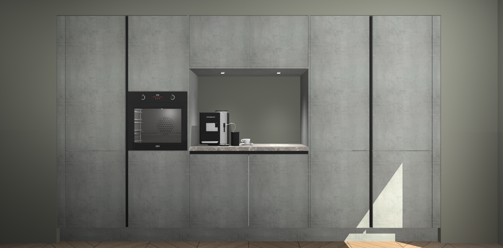 De Beton Parelgrijs greeploze keuken Lodz wordt geleverd met een set van 5 ingebouwde apparaten: Een oven, inductiekookplaat, afzuigkap, vaatwasser en koelkast. Deze kunnen gemakkelijk worden opgewaardeerd naar AEG. Met de gegarandeerde lage prijs en de snelle levering van 7 weken kan u er op rekenen dat de Beton Parelgrijs greeploze keuken Lodz zo snel mogelijk uw huis bereikt!