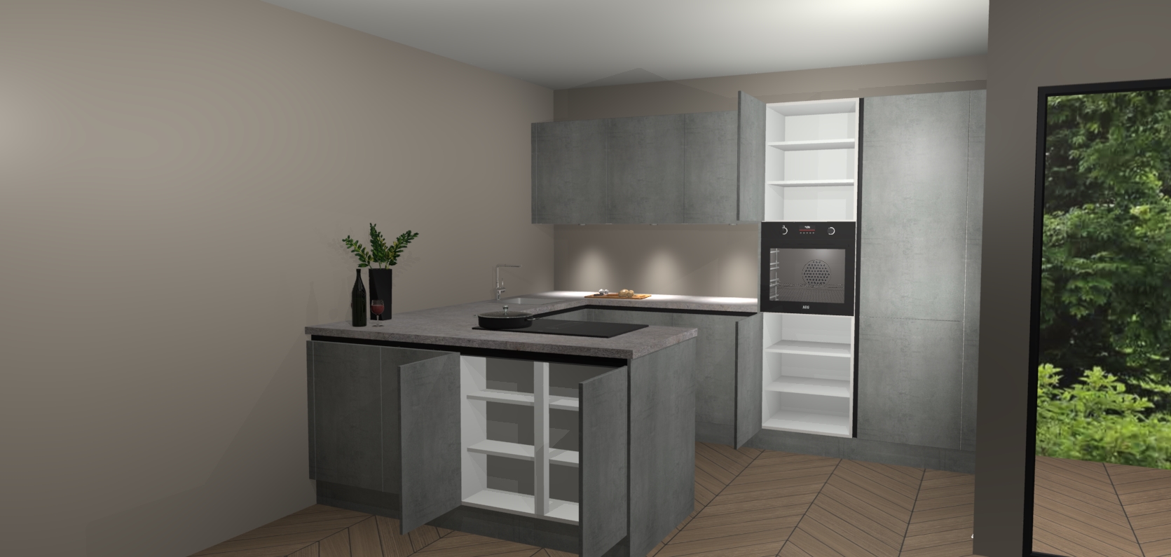 Inclusief plinten, stelpoten en werkblad