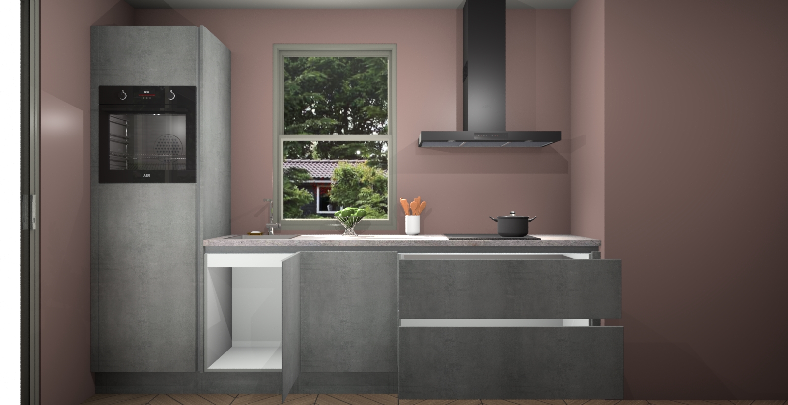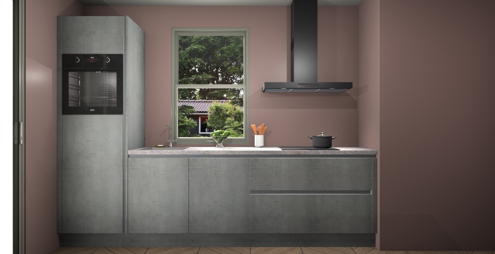 Een stijlvolle en praktische keuken als deze mag gezien worden. Dankzij de prachtige Beton Parelgrijs afwerking wordt de keuken gemakkelijk het middelpunt van uw huis - hij ziet er geweldig uit onder allerlei lichtomstandigheden, van dag tot nacht!