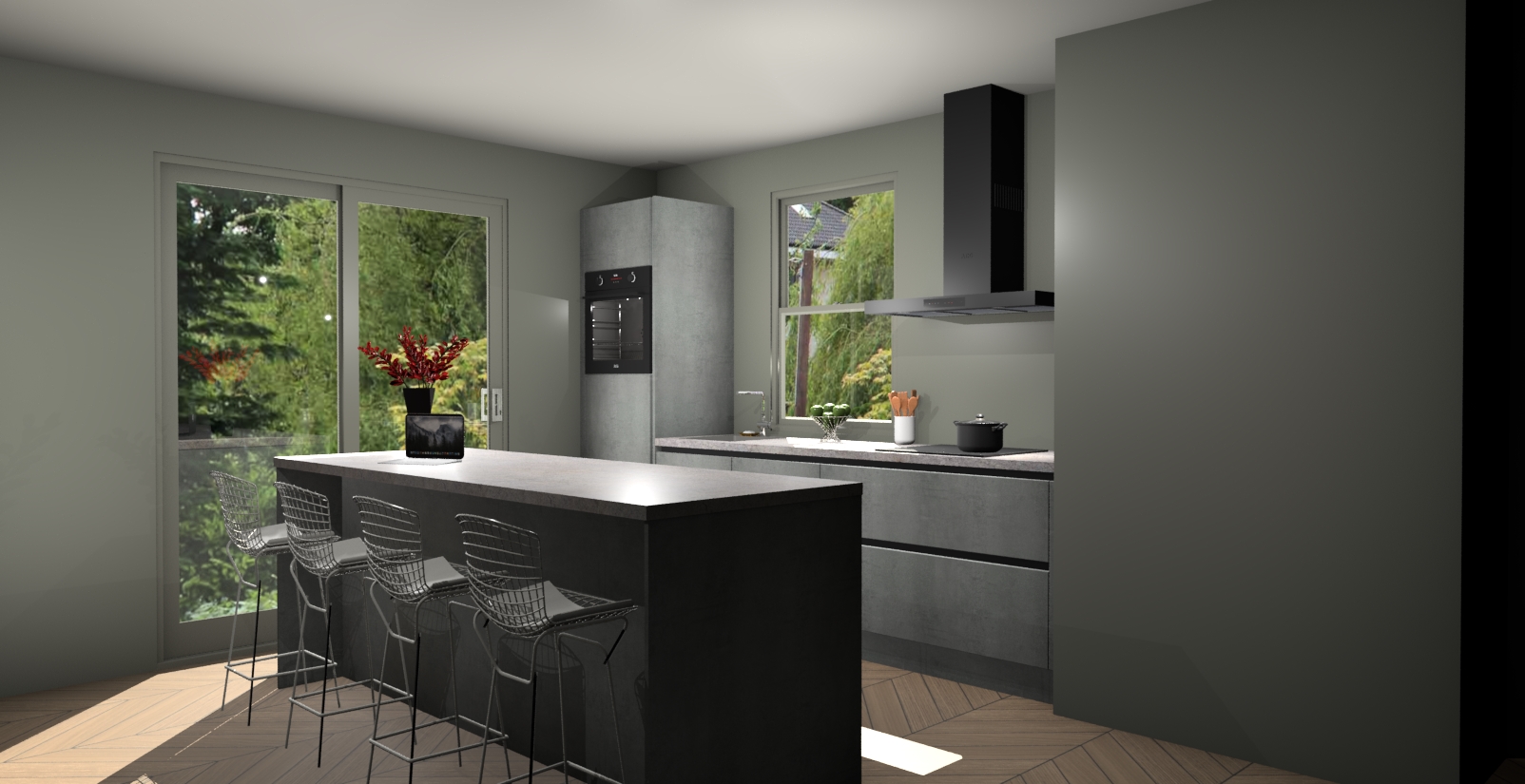 Een stijlvolle en praktische keuken als deze mag gezien worden. Dankzij de prachtige Beton Parelgrijs afwerking wordt de keuken gemakkelijk het middelpunt van uw huis - hij ziet er geweldig uit onder allerlei lichtomstandigheden, van dag tot nacht!