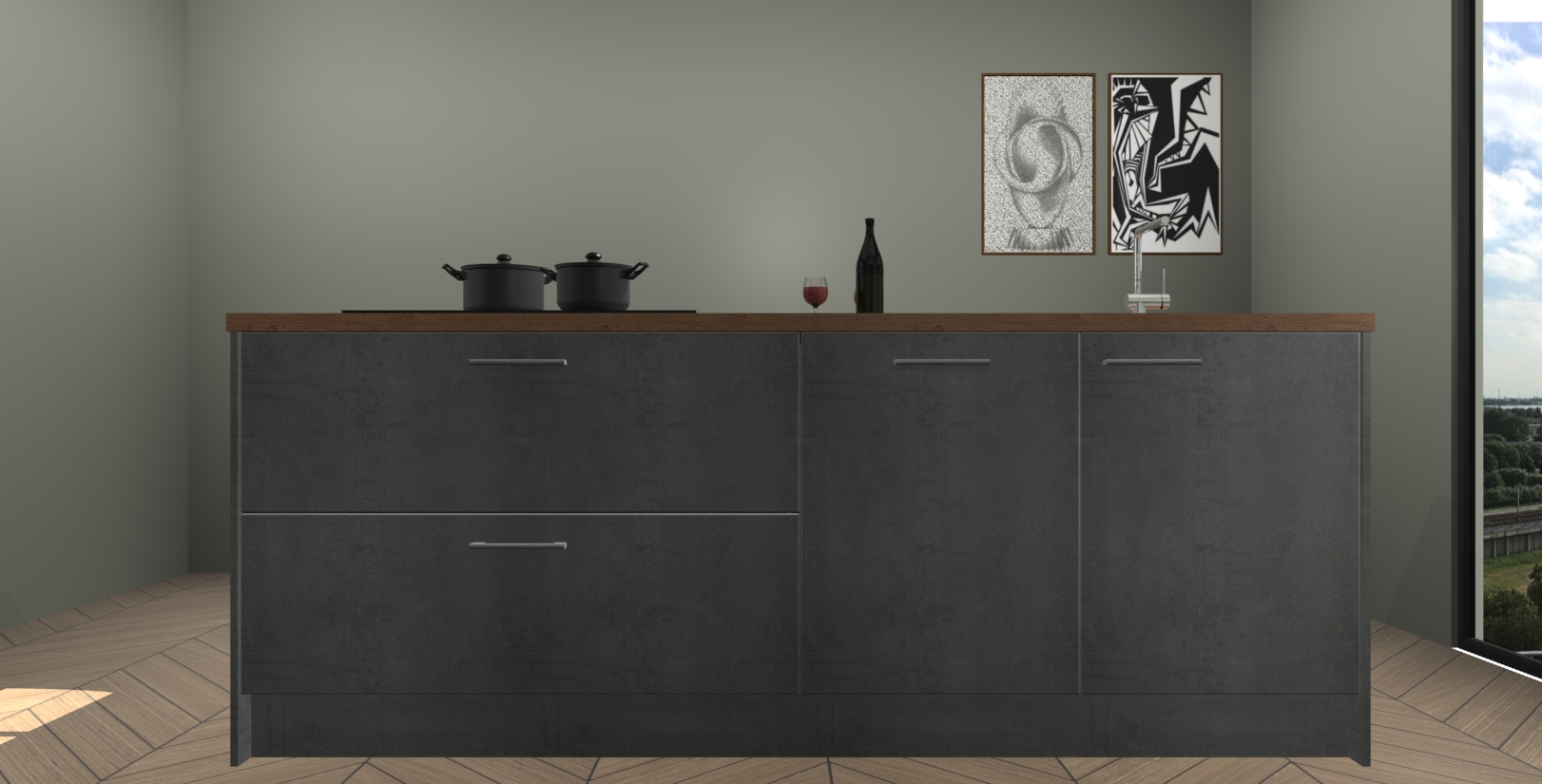 Inclusief plinten, stelpoten en werkblad