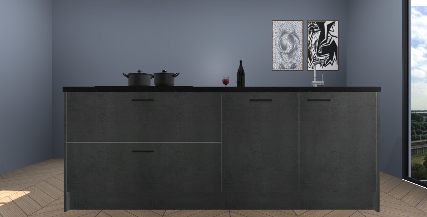 Inclusief plinten, stelpoten en werkblad