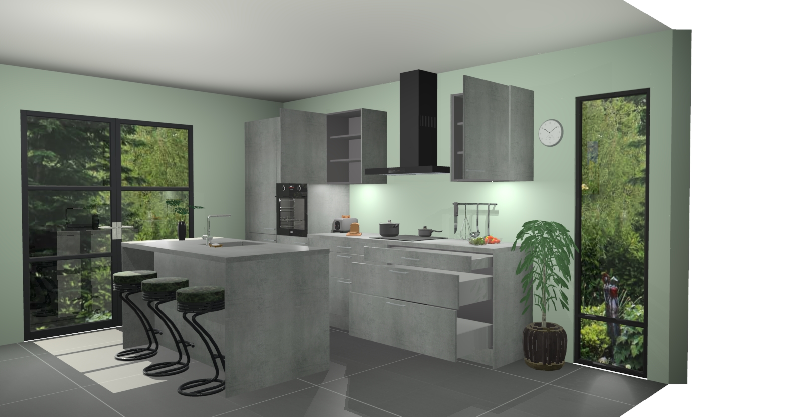 Klaar om een statement te maken in uw keuken? De Beton parelgrijs keuken Spanje is precies wat u nodig heeft. Dit moderne keuken ontwerp is de perfecte balans tussen esthetiek en functionaliteit in uw huis. Met een sfeervolle afwerking en voldoende opbergruimte kan u er zeker van zijn dat u heerlijke maaltijden bereidt en ze in uw keuken kan bewaren voor de dagen dat u het te druk hebt. Bovendien voegt het mooie spoeleiland een element van klasse en gemak toe aan uw keuken.