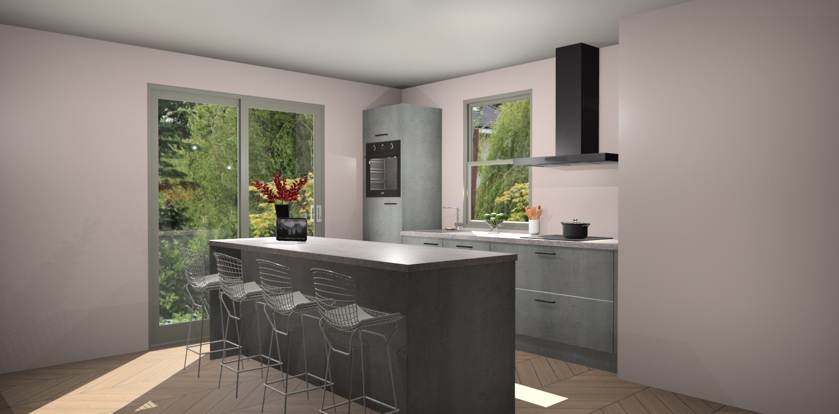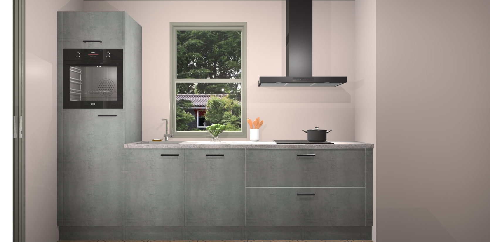 Een stijlvolle en praktische keuken als deze mag gezien worden. Dankzij de prachtige Beton Parelgrijs afwerking wordt de keuken gemakkelijk het middelpunt van uw huis - hij ziet er geweldig uit onder allerlei lichtomstandigheden, van dag tot nacht!