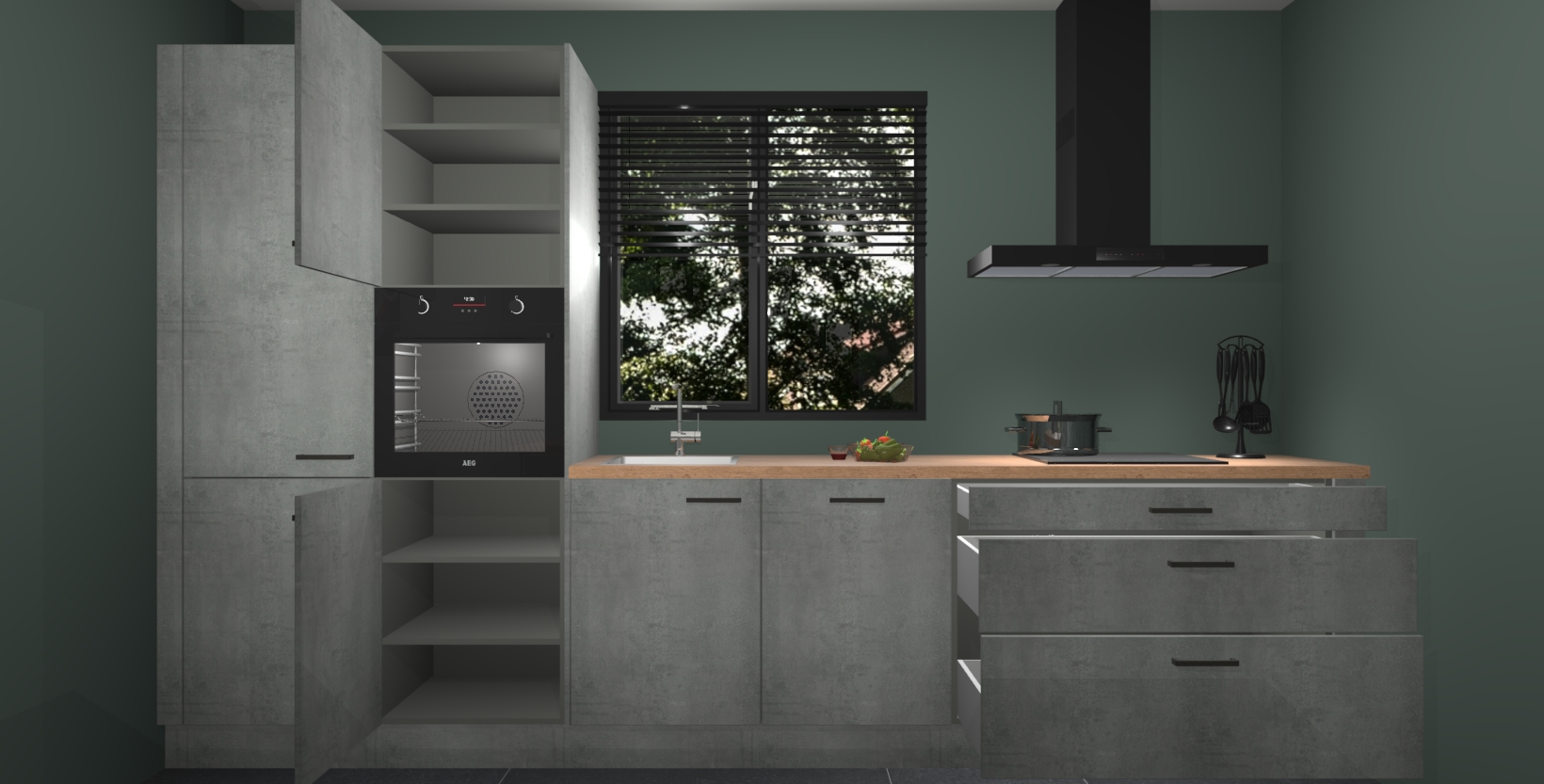 Maak kennis met de beton parelgrijze keuken Bonaire: de perfecte balans tussen tijdloos en modern. Met voldoende opbergruimte zal deze keuken de afgunst van uw vrienden en familie zijn, terwijl uw leven moeiteloos georganiseerd en rommelvrij blijft.