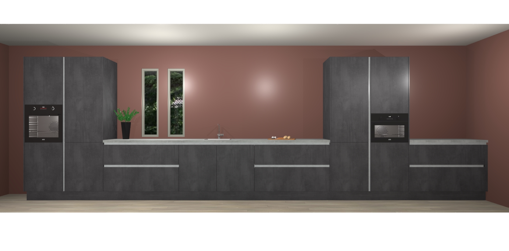De perfecte toevoeging aan uw droomkeuken! De beton zwarte greeploze keuken Krakor is een opmerkelijke en verfijnde keuken. Hij is ontworpen met moderne lijnen en tijdloze schoonheid die garant staan voor een luxe uitstraling. Deze uiterst functionele en mooie keuken heeft een reeks verbazingwekkende functies: de overvloedige opbergruimte bevat soft close deuren, terwijl vijf inbouwapparaten zijn inbegrepen in de vaste lage prijs. Beter nog, uw beton zwarte greeploze keuken Krakor bestellen duurt slechts 7 weken met levering van voorgemonteerde kasten.