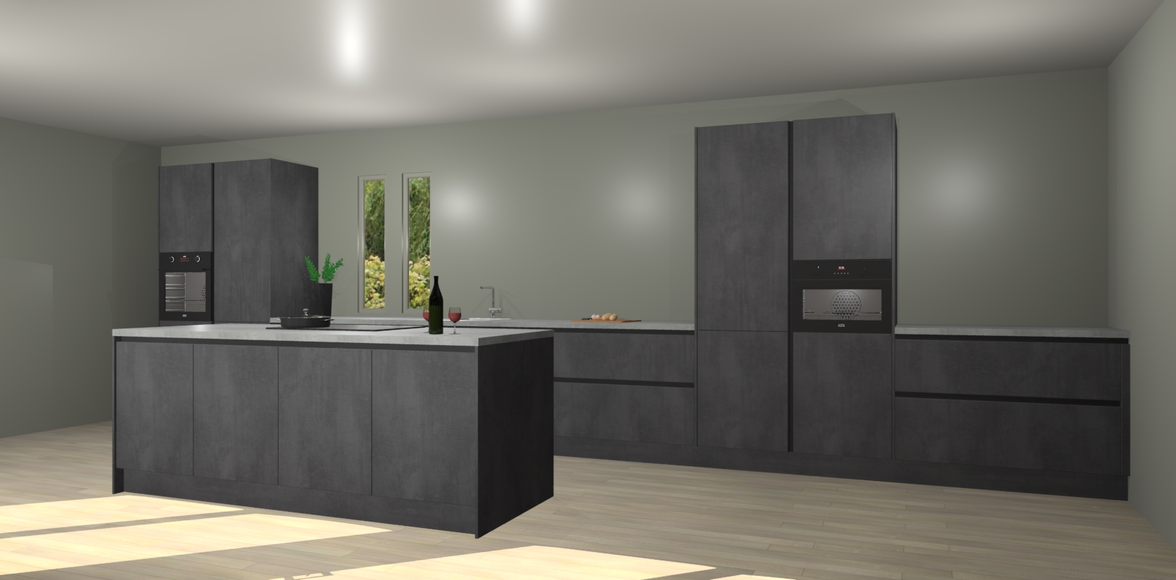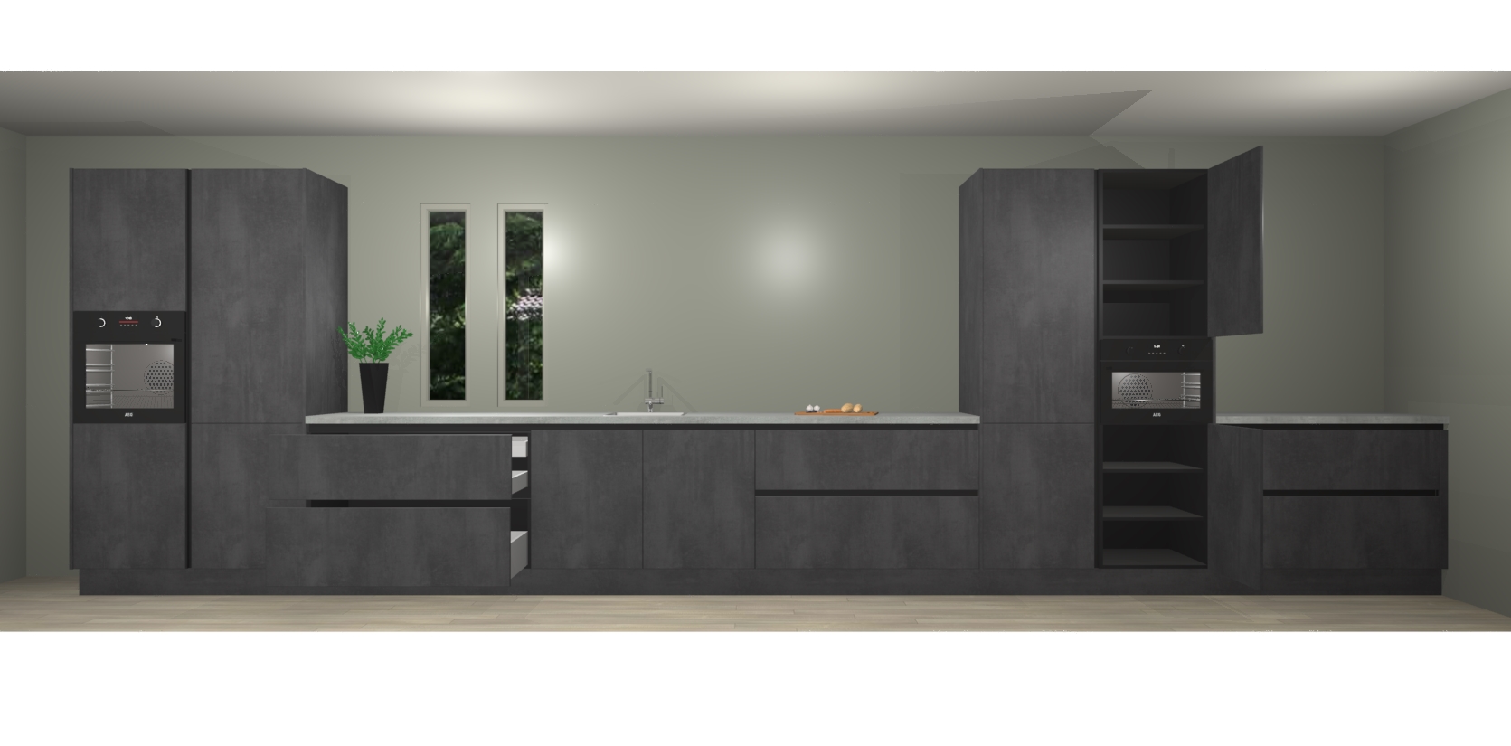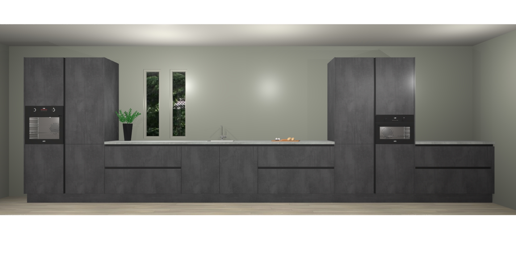 De perfecte toevoeging aan uw droomkeuken! De beton zwarte greeploze keuken Krakor is een opmerkelijke en verfijnde keuken. Hij is ontworpen met moderne lijnen en tijdloze schoonheid die garant staan voor een luxe uitstraling. Deze uiterst functionele en mooie keuken heeft een reeks verbazingwekkende functies: de overvloedige opbergruimte bevat soft close deuren, terwijl vijf inbouwapparaten zijn inbegrepen in de vaste lage prijs. Beter nog, uw beton zwarte greeploze keuken Krakor bestellen duurt slechts 7 weken met levering van voorgemonteerde kasten.