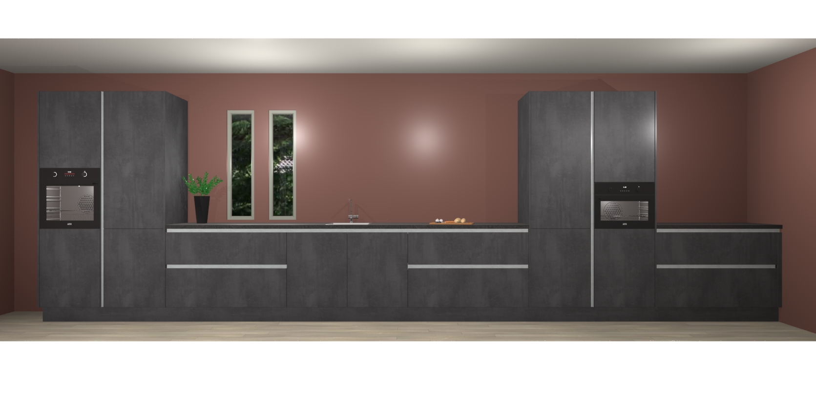De perfecte toevoeging aan uw droomkeuken! De beton zwarte greeploze keuken Krakor is een opmerkelijke en verfijnde keuken. Hij is ontworpen met moderne lijnen en tijdloze schoonheid die garant staan voor een luxe uitstraling. Deze uiterst functionele en mooie keuken heeft een reeks verbazingwekkende functies: de overvloedige opbergruimte bevat soft close deuren, terwijl vijf inbouwapparaten zijn inbegrepen in de vaste lage prijs. Beter nog, uw beton zwarte greeploze keuken Krakor bestellen duurt slechts 7 weken met levering van voorgemonteerde kasten.