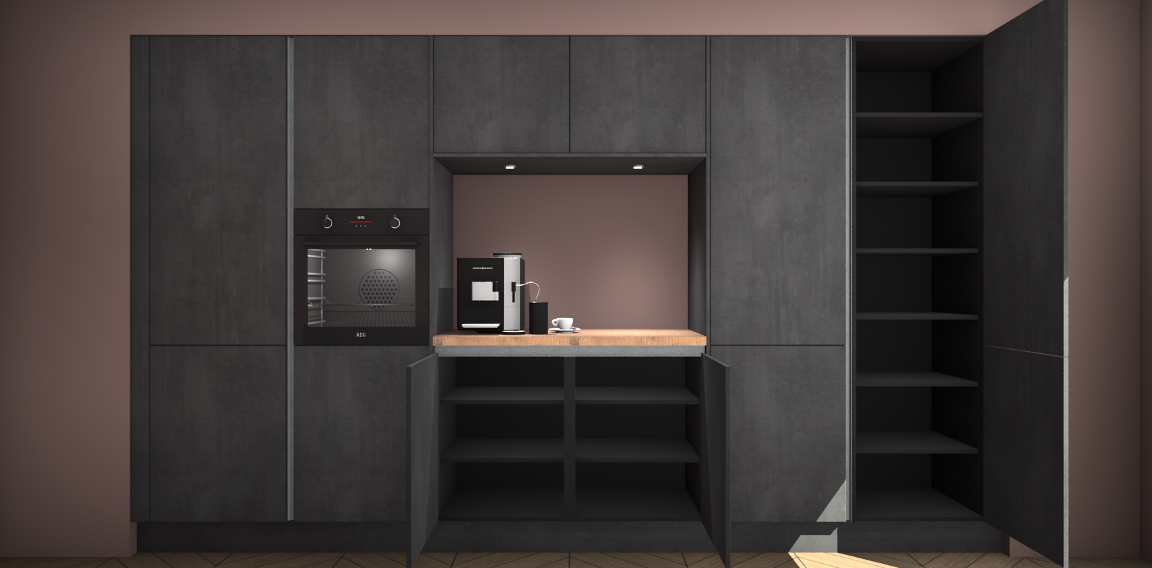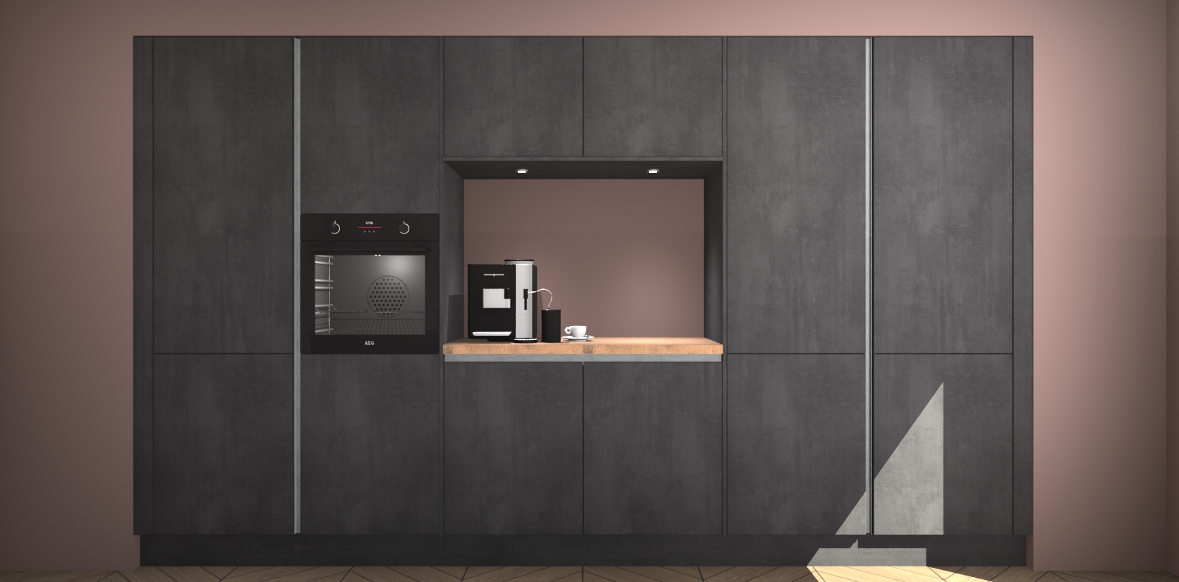 De Beton Zwarte greeploze keuken Lodz wordt geleverd met een set van 5 ingebouwde apparaten: Een oven, inductiekookplaat, afzuigkap, vaatwasser en koelkast. Deze kunnen gemakkelijk worden opgewaardeerd naar AEG. Met de gegarandeerde lage prijs en de snelle levering van 7 weken kan u er op rekenen dat de Beton Zwarte greeploze keuken Lodz zo snel mogelijk uw huis bereikt!