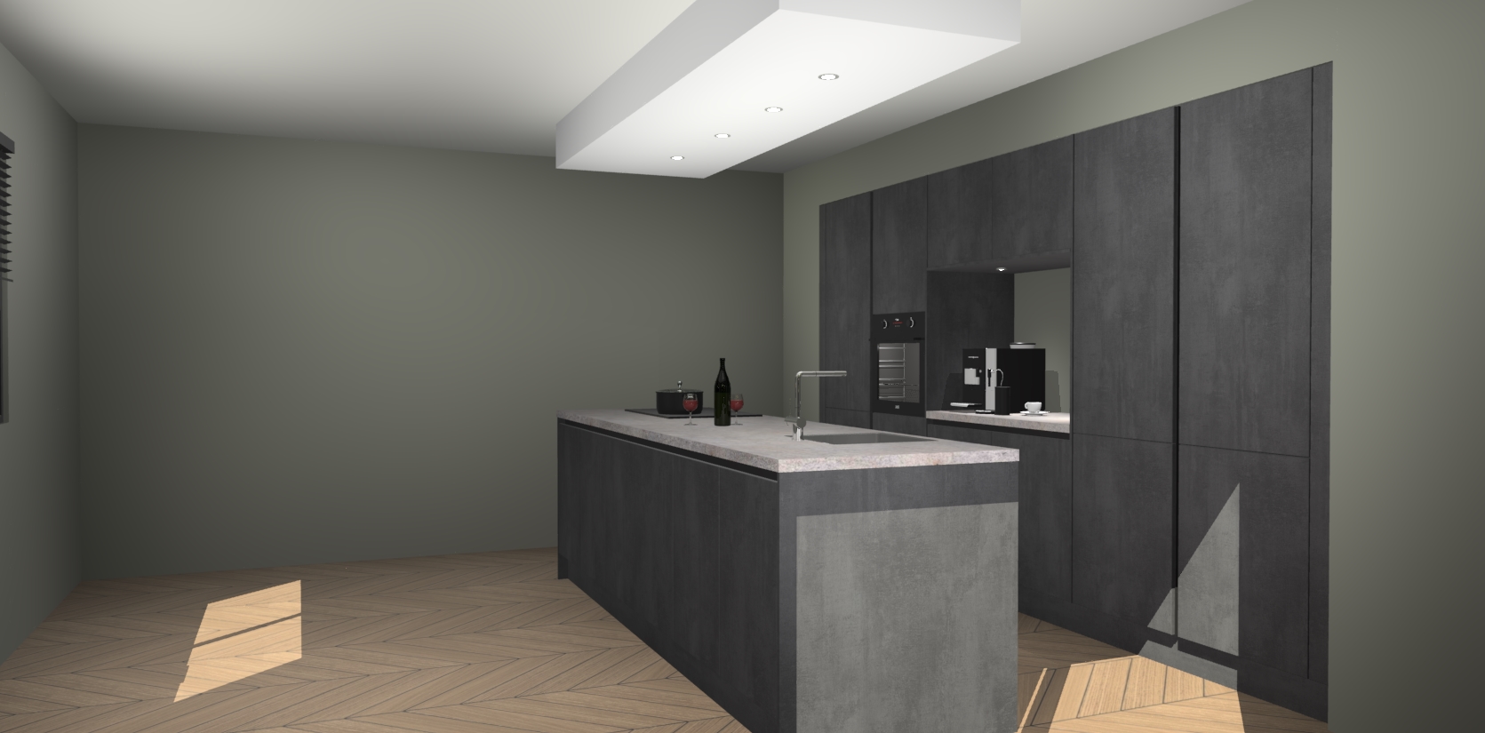 Sfeervol luxe met de Beton Zwarte greeploze keuken Lodz! Reken op een moderne look die met zijn schitterende Beton Zwarte kleur en het prachtige keukeneiland echt zal schitteren in uw keuken. Met veel verschillende berging opties zult u alles kunnen opbergen wat u nodig heeft in deze hoopvolle ruimte, waaronder ook soft-close vergrendeling.