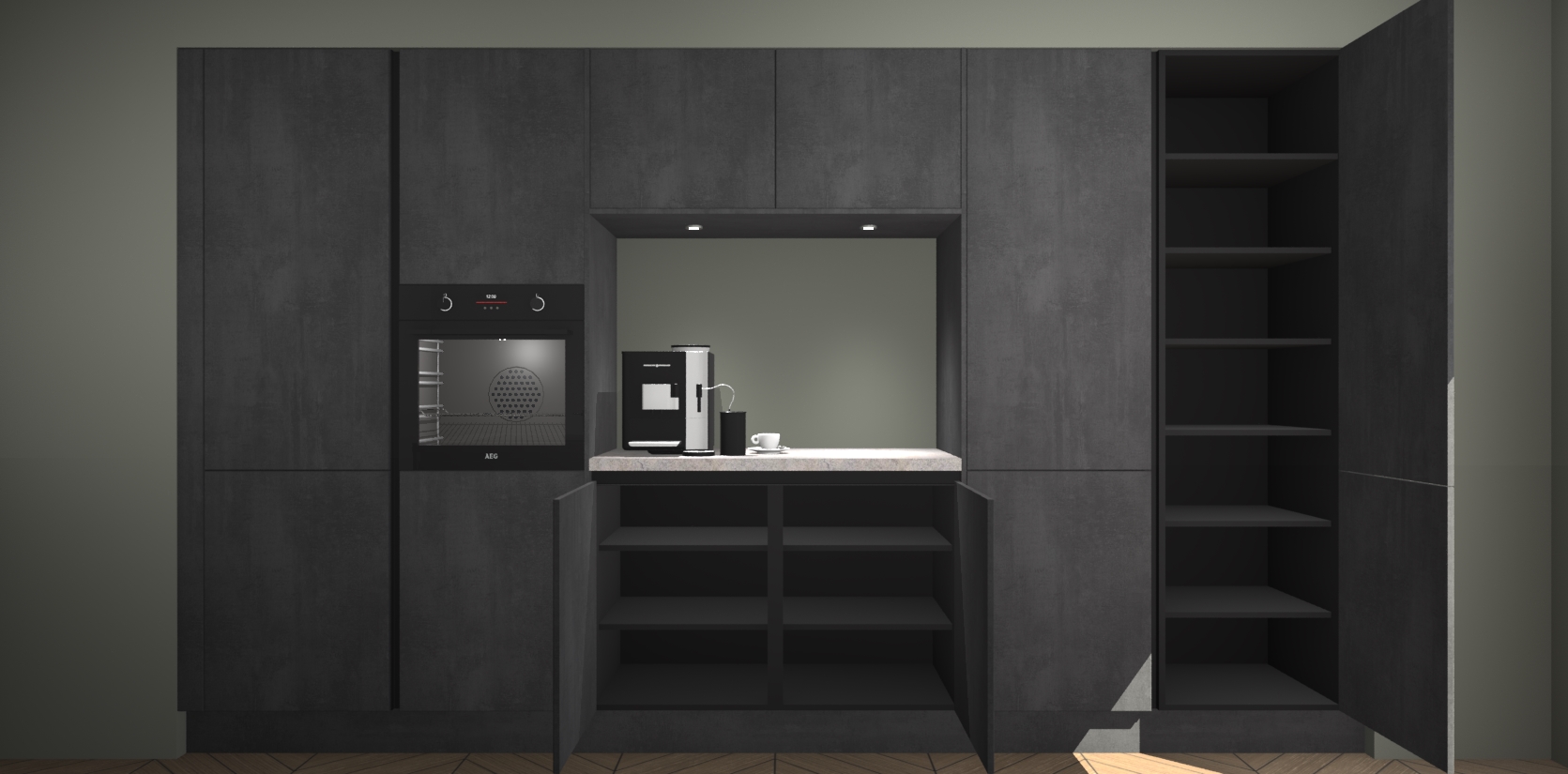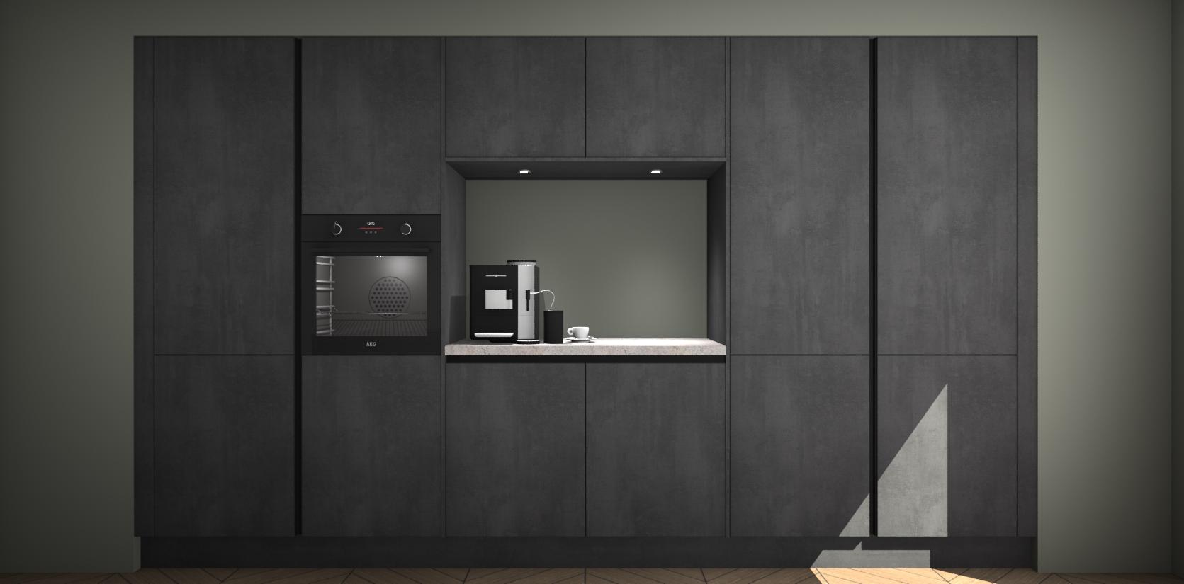 De Beton Zwarte greeploze keuken Lodz wordt geleverd met een set van 5 ingebouwde apparaten: Een oven, inductiekookplaat, afzuigkap, vaatwasser en koelkast. Deze kunnen gemakkelijk worden opgewaardeerd naar AEG. Met de gegarandeerde lage prijs en de snelle levering van 7 weken kan u er op rekenen dat de Beton Zwarte greeploze keuken Lodz zo snel mogelijk uw huis bereikt!