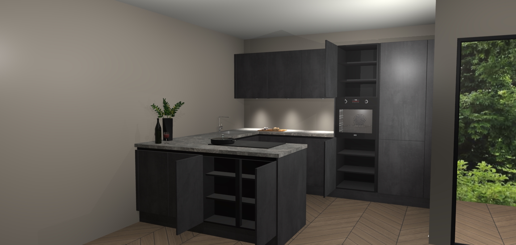 Inclusief plinten, stelpoten en werkblad
