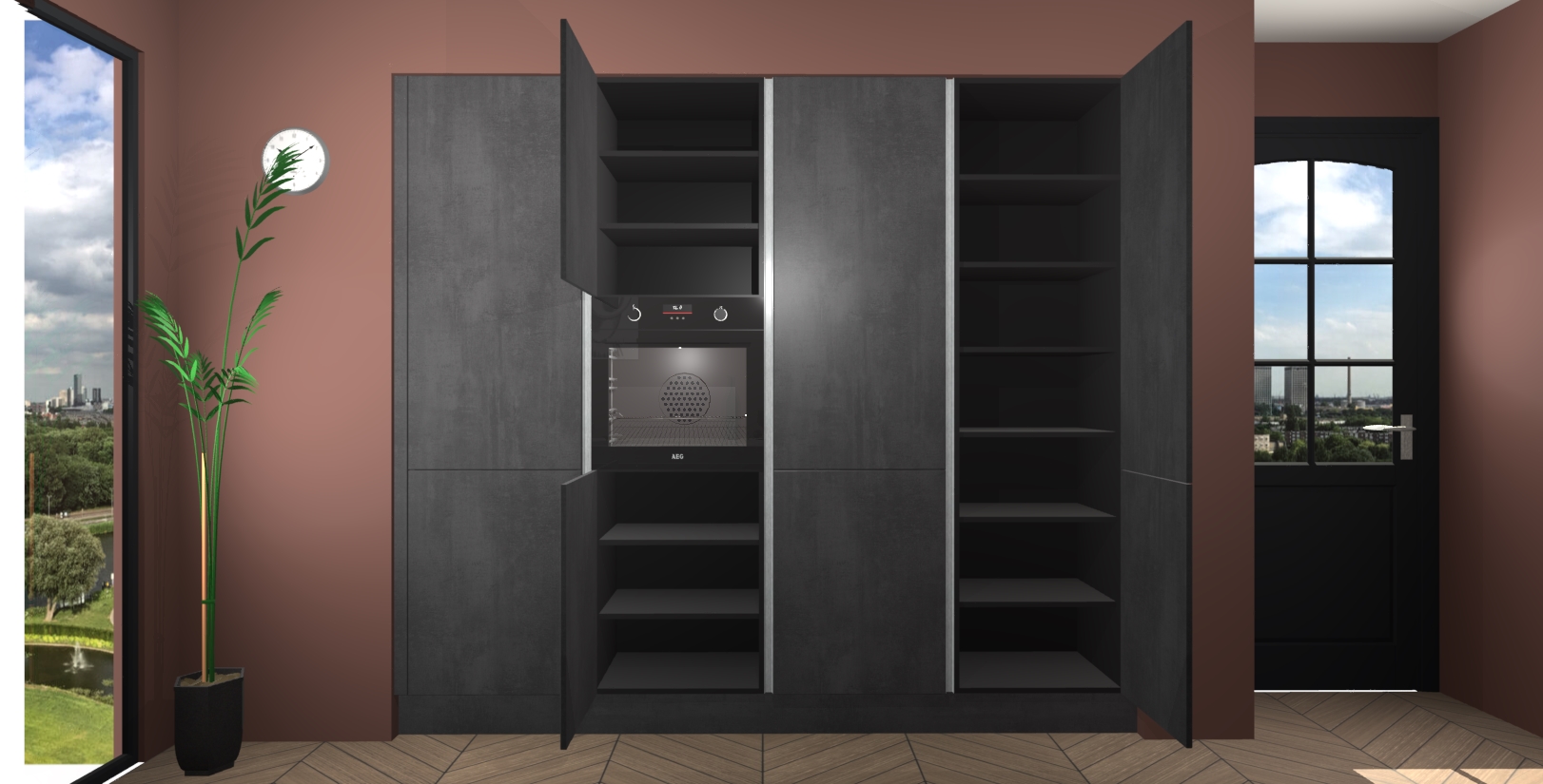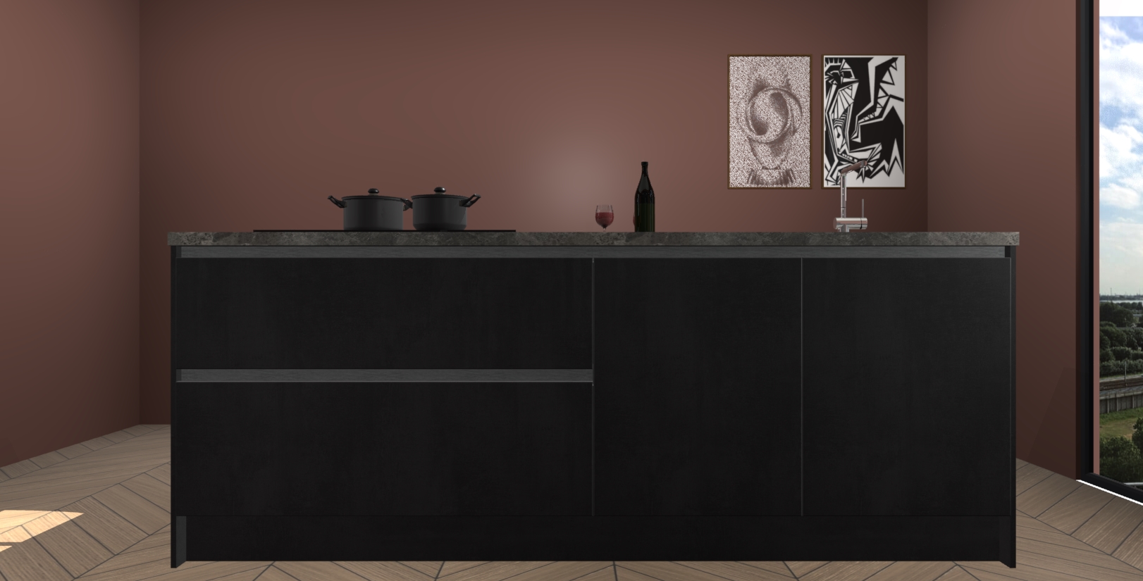 Breng luxe in uw keuken met de beton zwarte greeploze Rusiec Keuken! Dit prachtige kookeiland straalt elegantie uit en laat elke ruimte er modern en verfijnd uitzien. De strakke beton zwarte kleur geeft uw keuken een gevoel van sfeer en verfijning dat u bij andere stijlen niet krijgt.