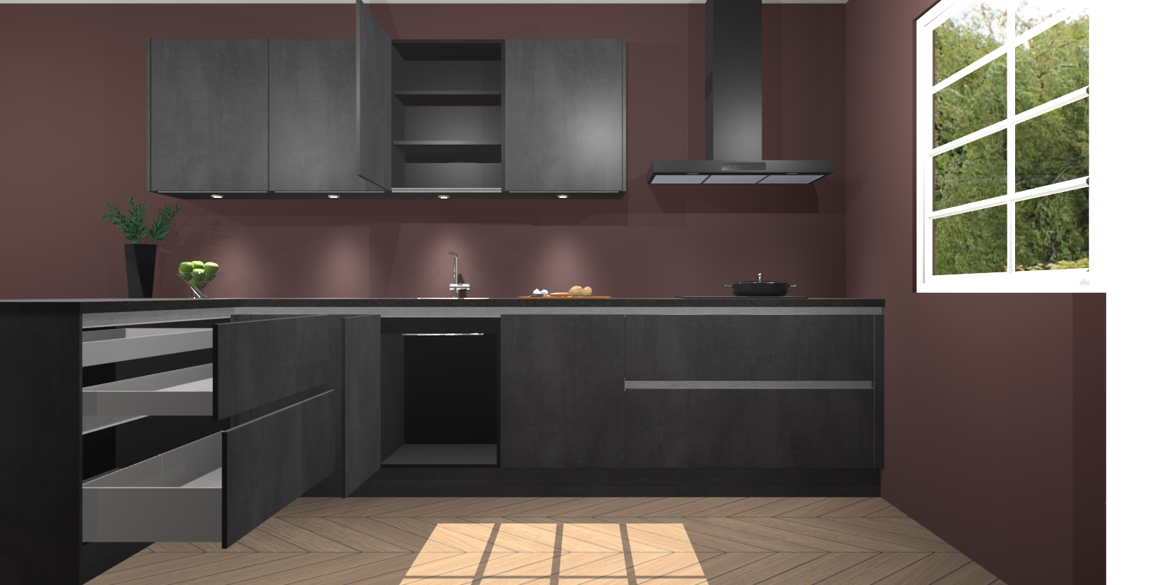 De perfecte toevoeging aan uw droomkeuken! De beton zwarte greeploze keuken Sopot is een opmerkelijke en verfijnde keuken. Hij is ontworpen met moderne lijnen en tijdloze schoonheid die garant staan voor een luxe uitstraling. Deze uiterst functionele en mooie keuken heeft een reeks verbazingwekkende functies: de overvloedige opbergruimte bevat soft close deuren, terwijl vijf inbouwapparaten zijn inbegrepen in de vaste lage prijs. Beter nog, uw beton zwarte greeploze keuken Sopot bestellen duurt slechts 7 weken met levering van voorgemonteerde kasten.
