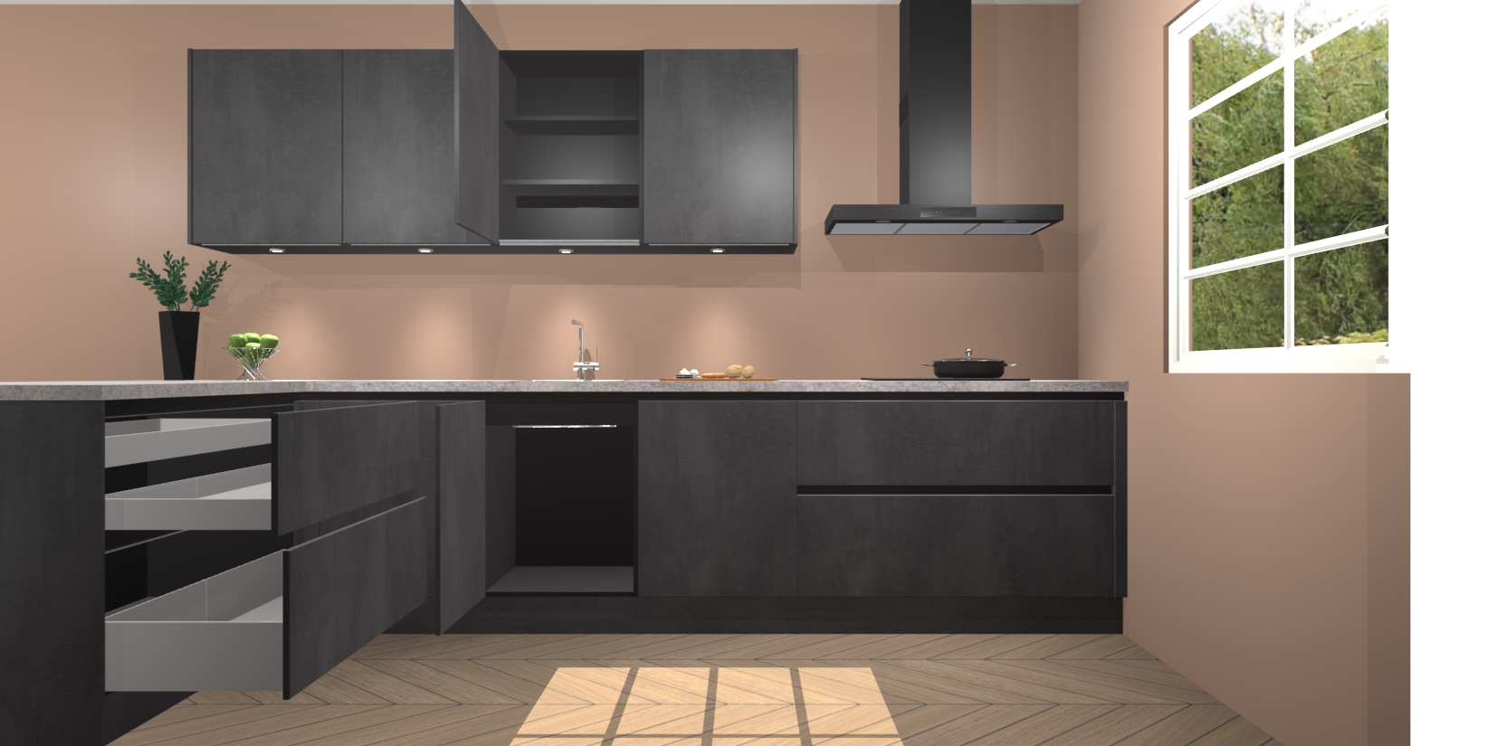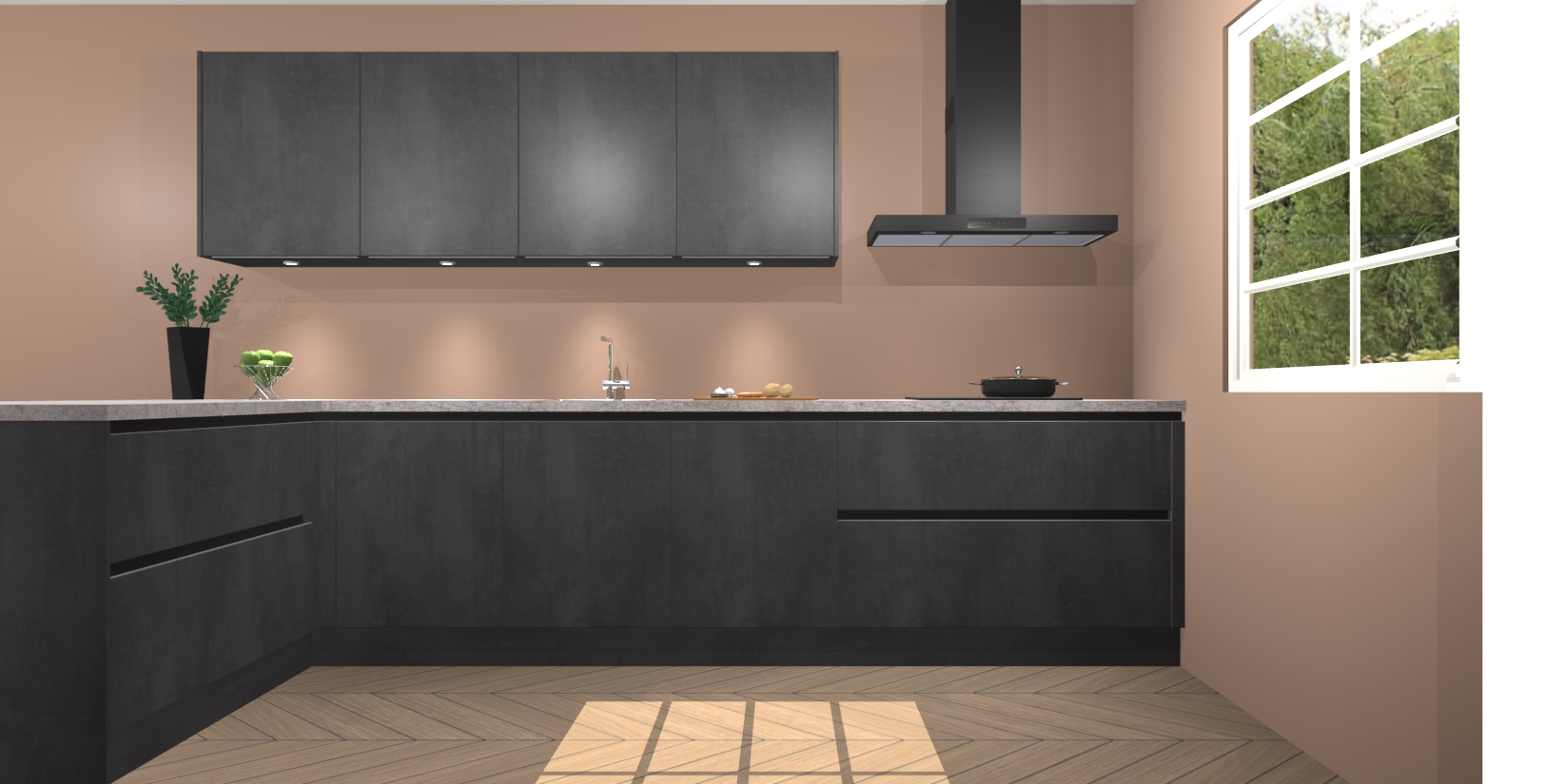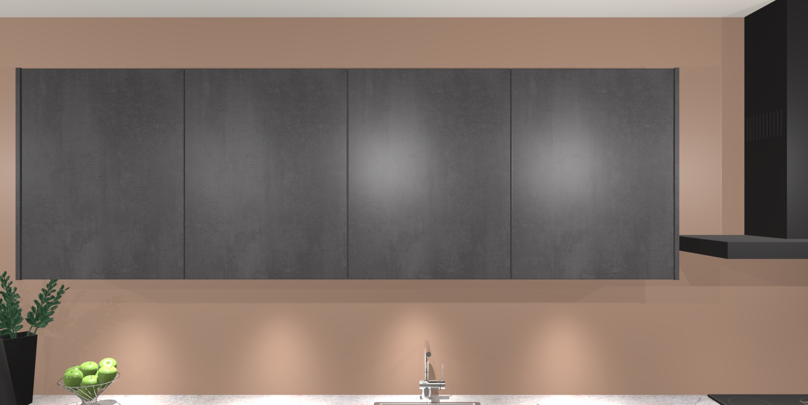 De perfecte toevoeging aan uw droomkeuken! De beton zwarte greeploze keuken Sopot is een opmerkelijke en verfijnde keuken. Hij is ontworpen met moderne lijnen en tijdloze schoonheid die garant staan voor een luxe uitstraling. Deze uiterst functionele en mooie keuken heeft een reeks verbazingwekkende functies: de overvloedige opbergruimte bevat soft close deuren, terwijl vijf inbouwapparaten zijn inbegrepen in de vaste lage prijs. Beter nog, uw beton zwarte greeploze keuken Sopot bestellen duurt slechts 7 weken met levering van voorgemonteerde kasten.