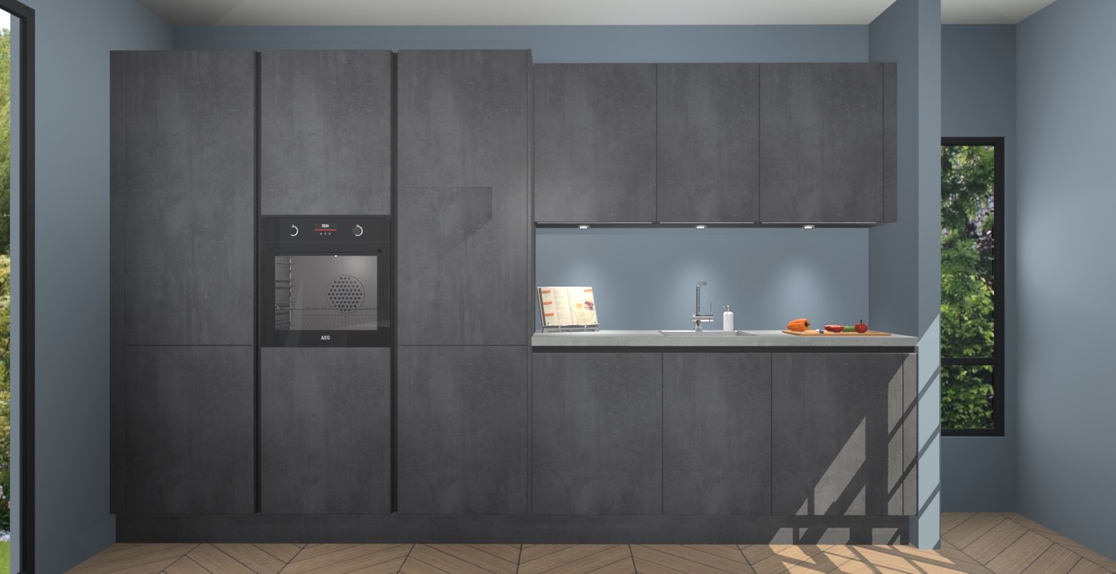 De Beton Zwarte Greeploze keuken Straatsburg wordt geleverd met een snelle levertijd van 7 weken, zodat u hem zo snel mogelijk kunt installeren. En omdat de kasten voorgemonteerd worden geleverd, is de installatie snel en eenvoudig - dat scheelt tijd en gedoe.
